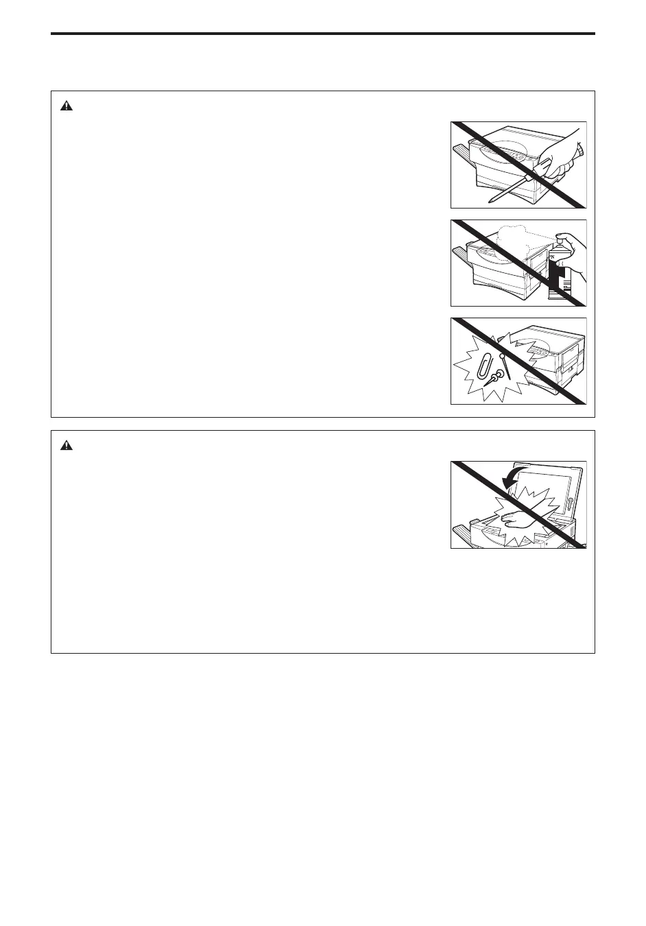 I Do not attempt to disassemble or modify the copier. There are high temperature and