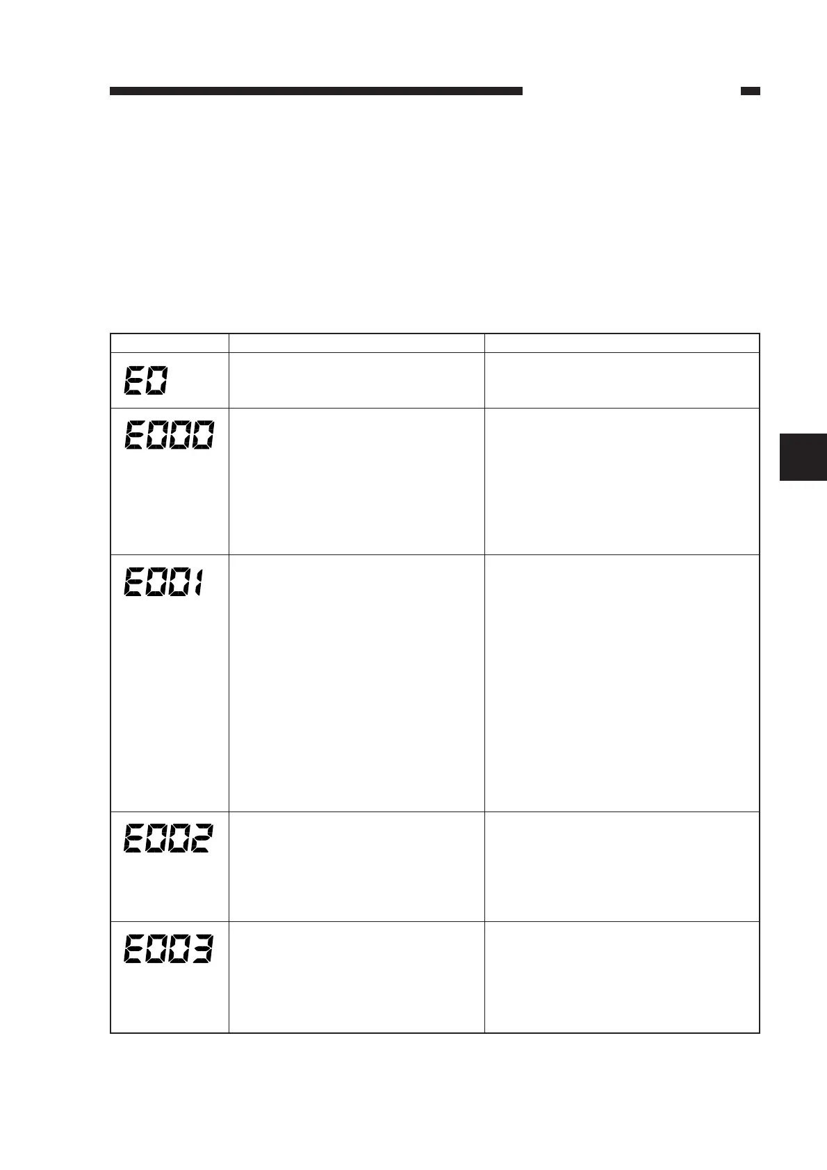 ‘E001’, ‘E002’, ‘E003’) has occurred.