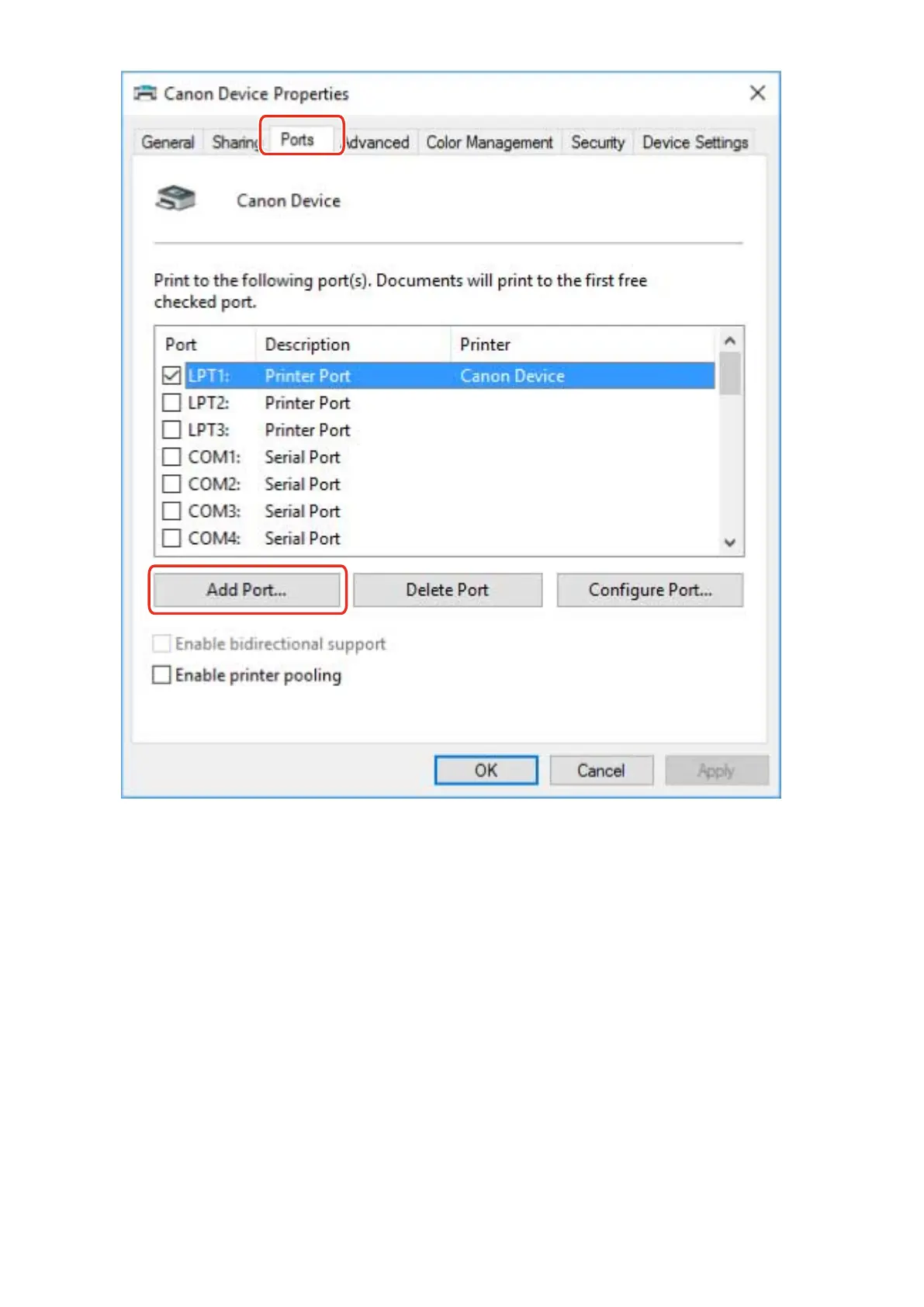 In the [Printer Ports] dialog box, select [Standard TCP/IP Port] from [Available port