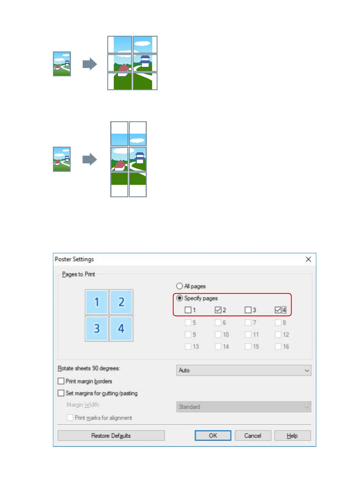 When [Poster Settings] dialog box > [Rotate sheets 90 degrees] > [Off] is selected