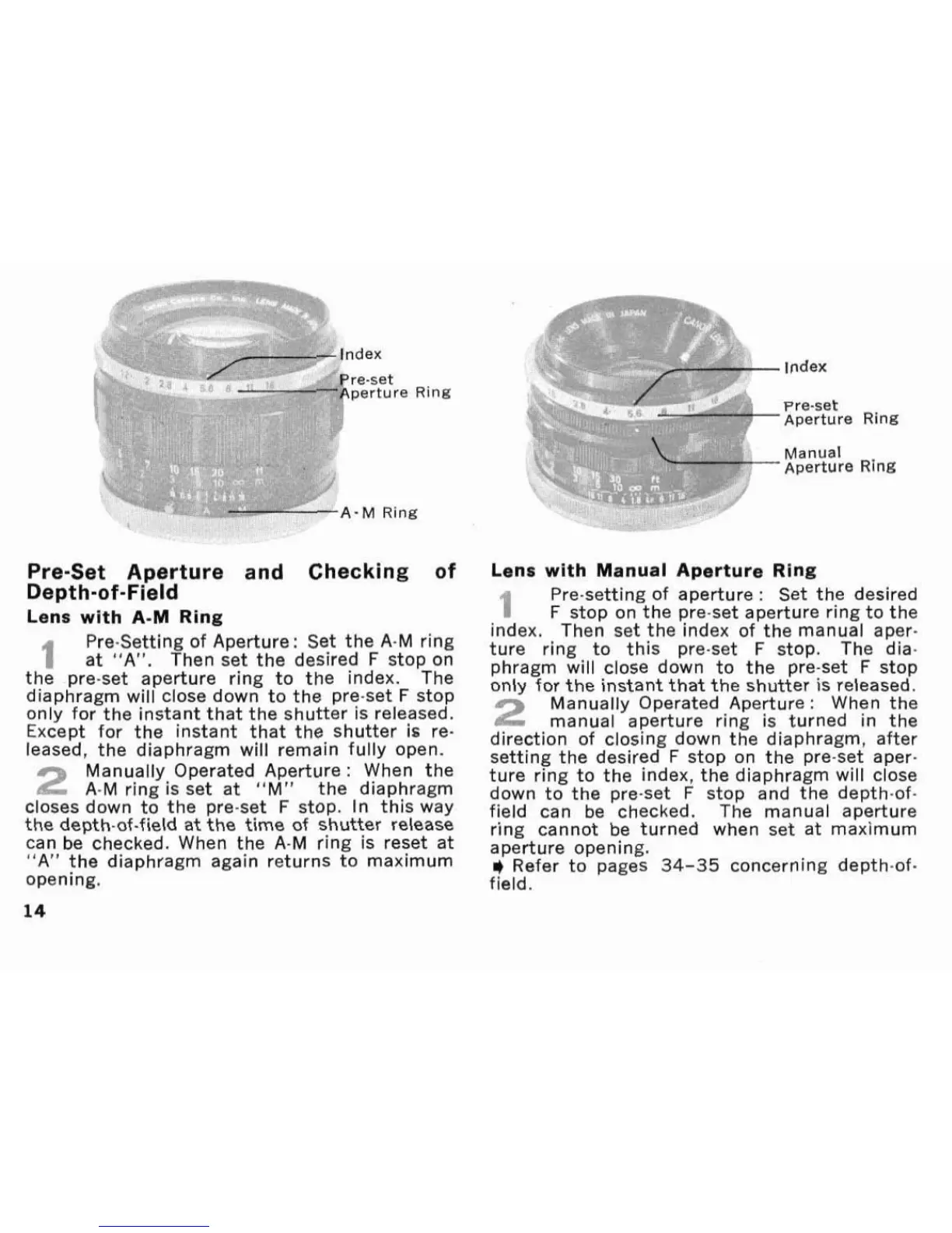 pre.set aperture ring to the index. 'The
