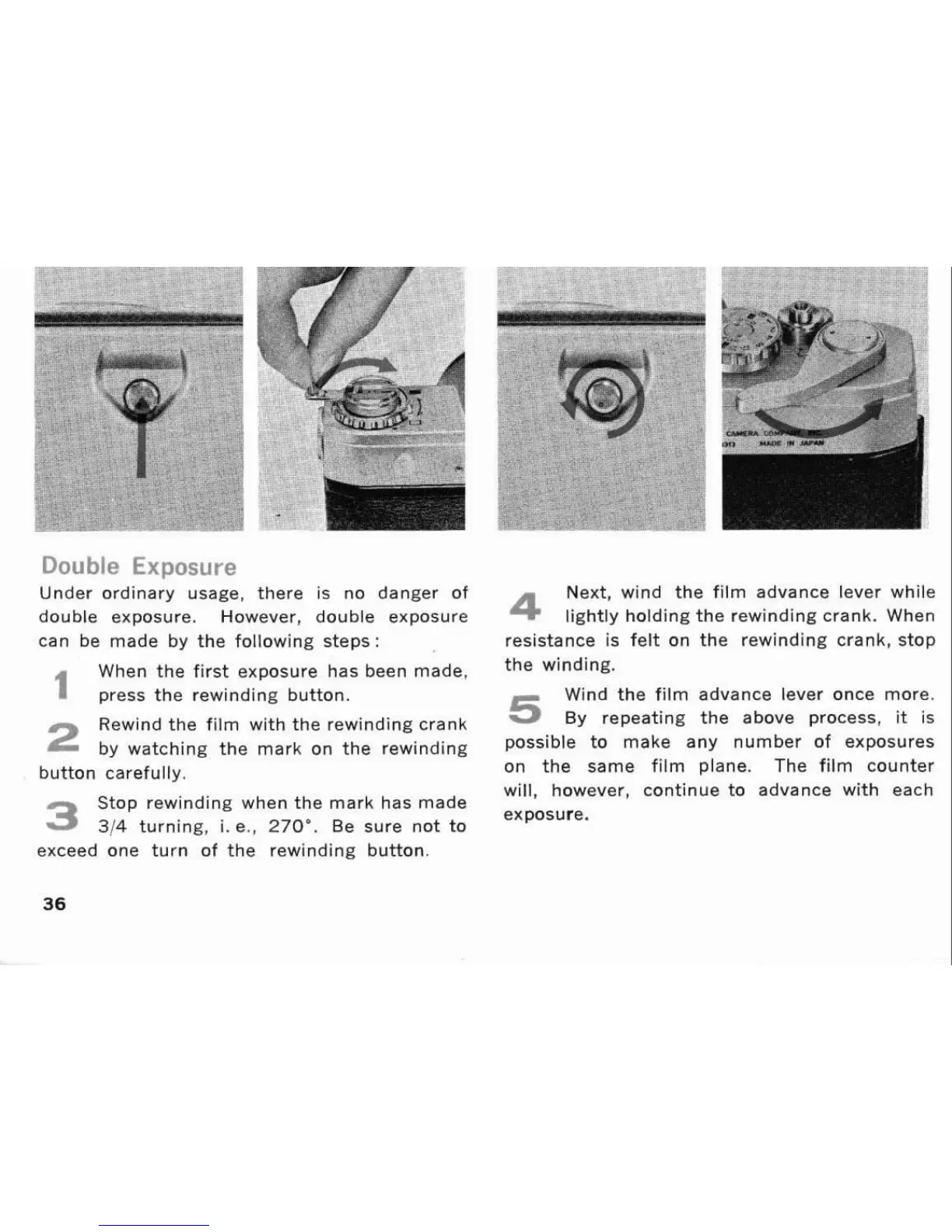 Rewind the film with the rewinding crank