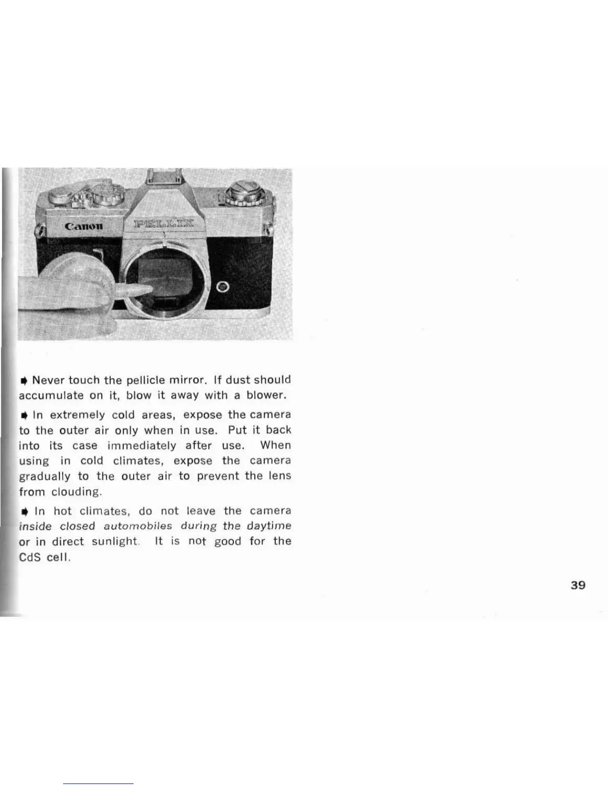 Never touch the peliicle mirror. if dust should