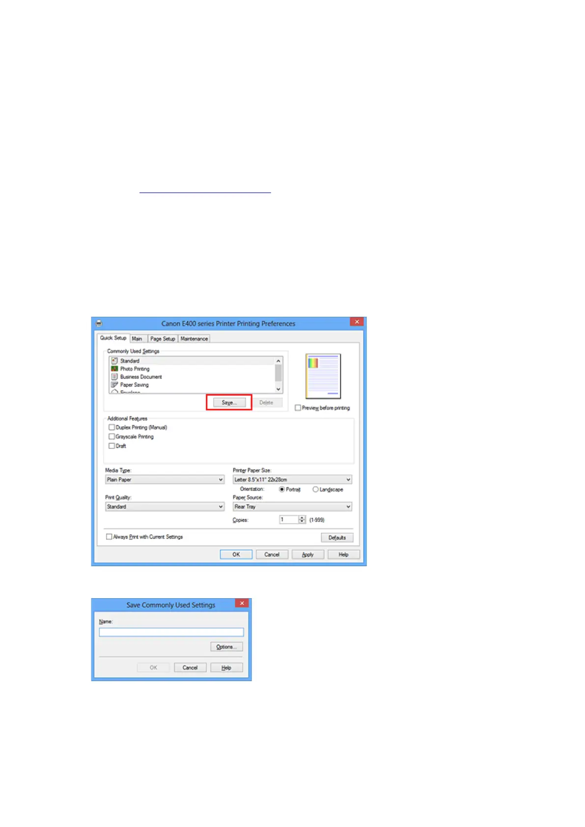 You can register the frequently used printing profile to Commonly Used Settings on the Quick Setup tab.