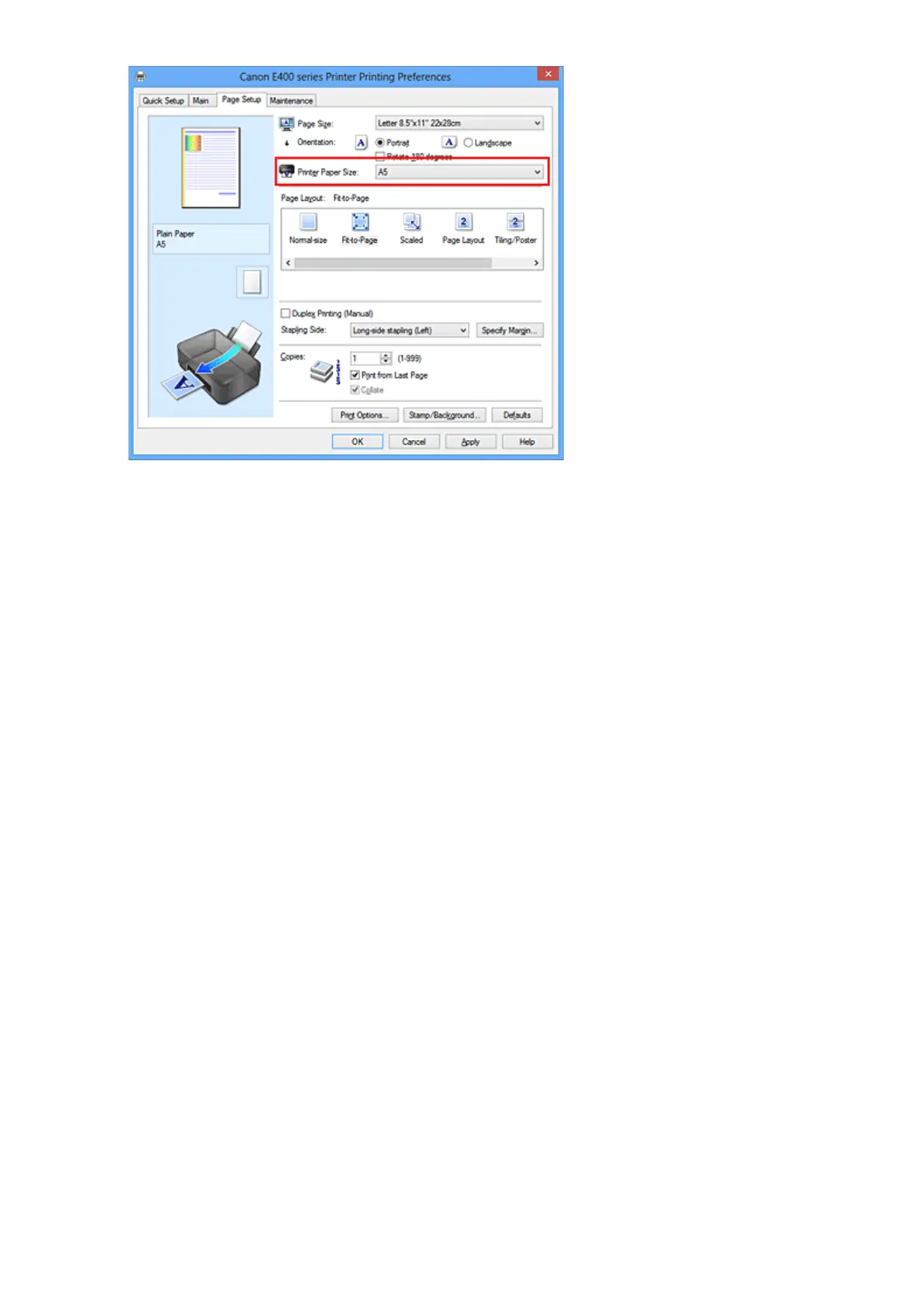 When you execute print, the document will be enlarged or reduced to fit to the page size.