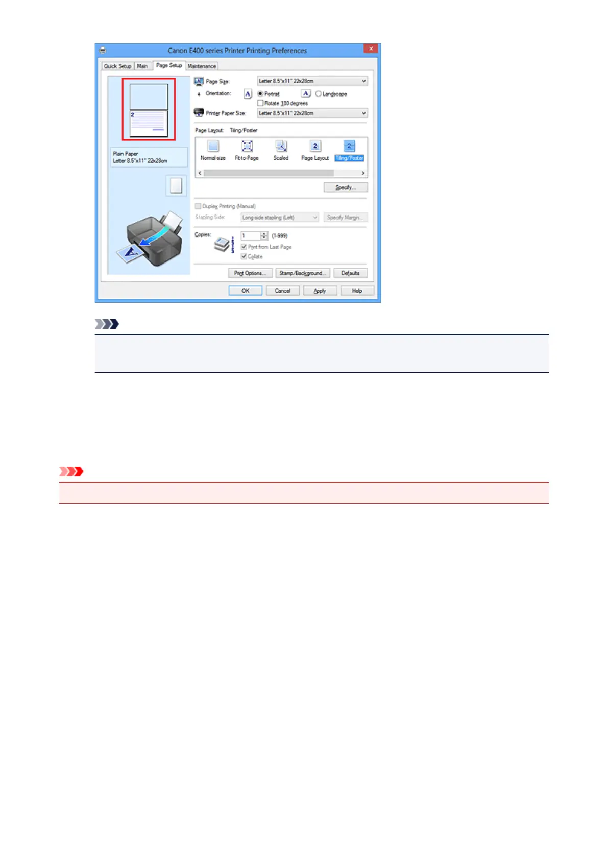 • Since tiling/poster printing enlarges the document when printing it, the print results may become coarse.
