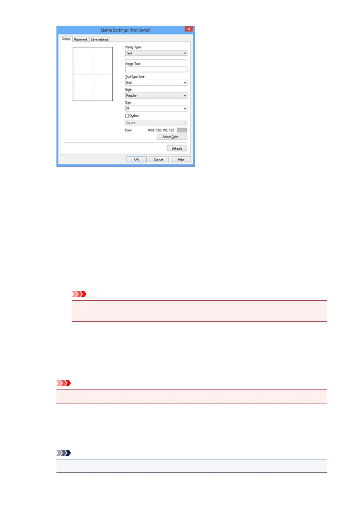 displayed in Stamp Text. If necessary, change the settings of TrueType Font, Style, Size,