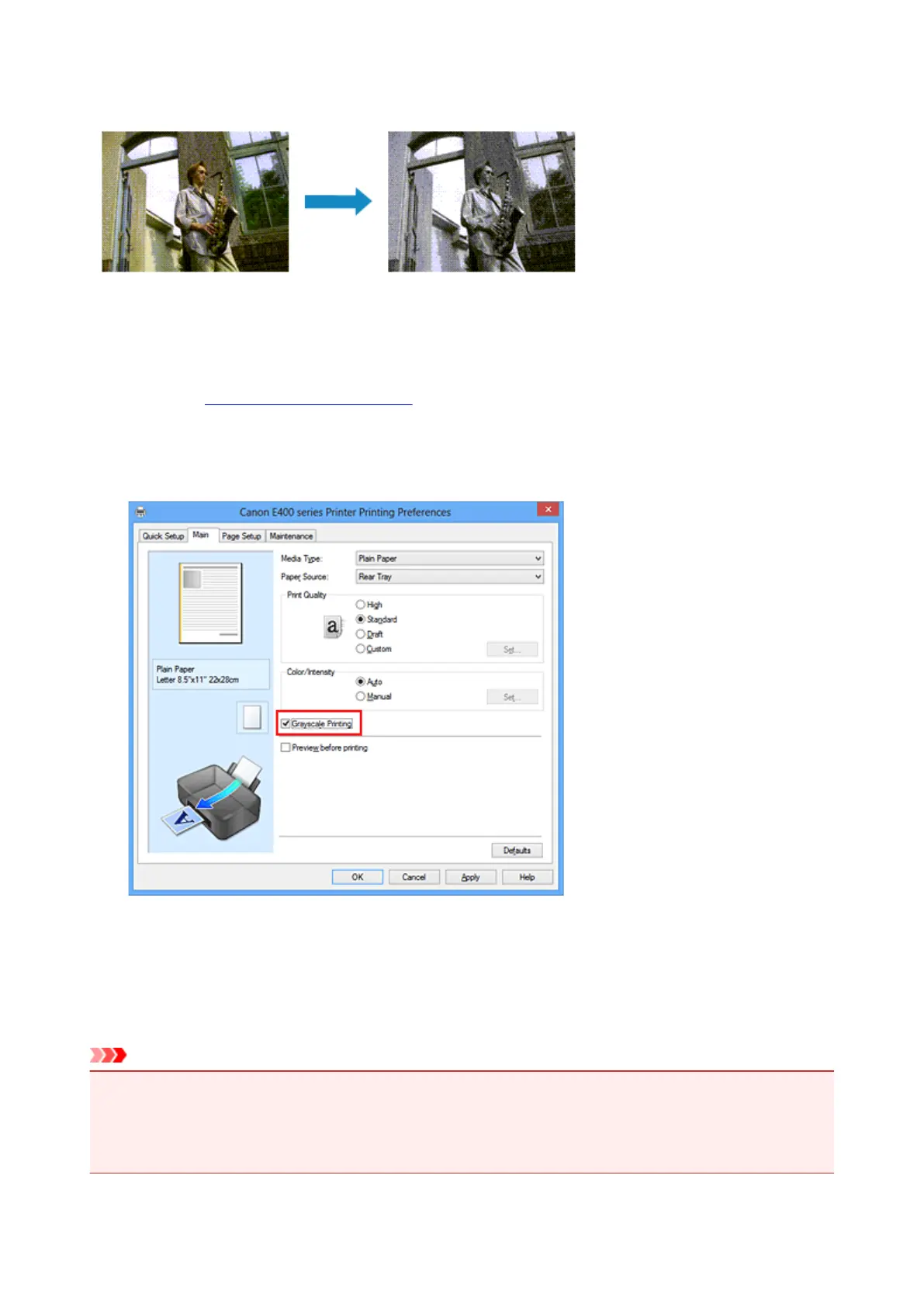 You can also set a grayscale printing in Additional Features on the Quick Setup tab.