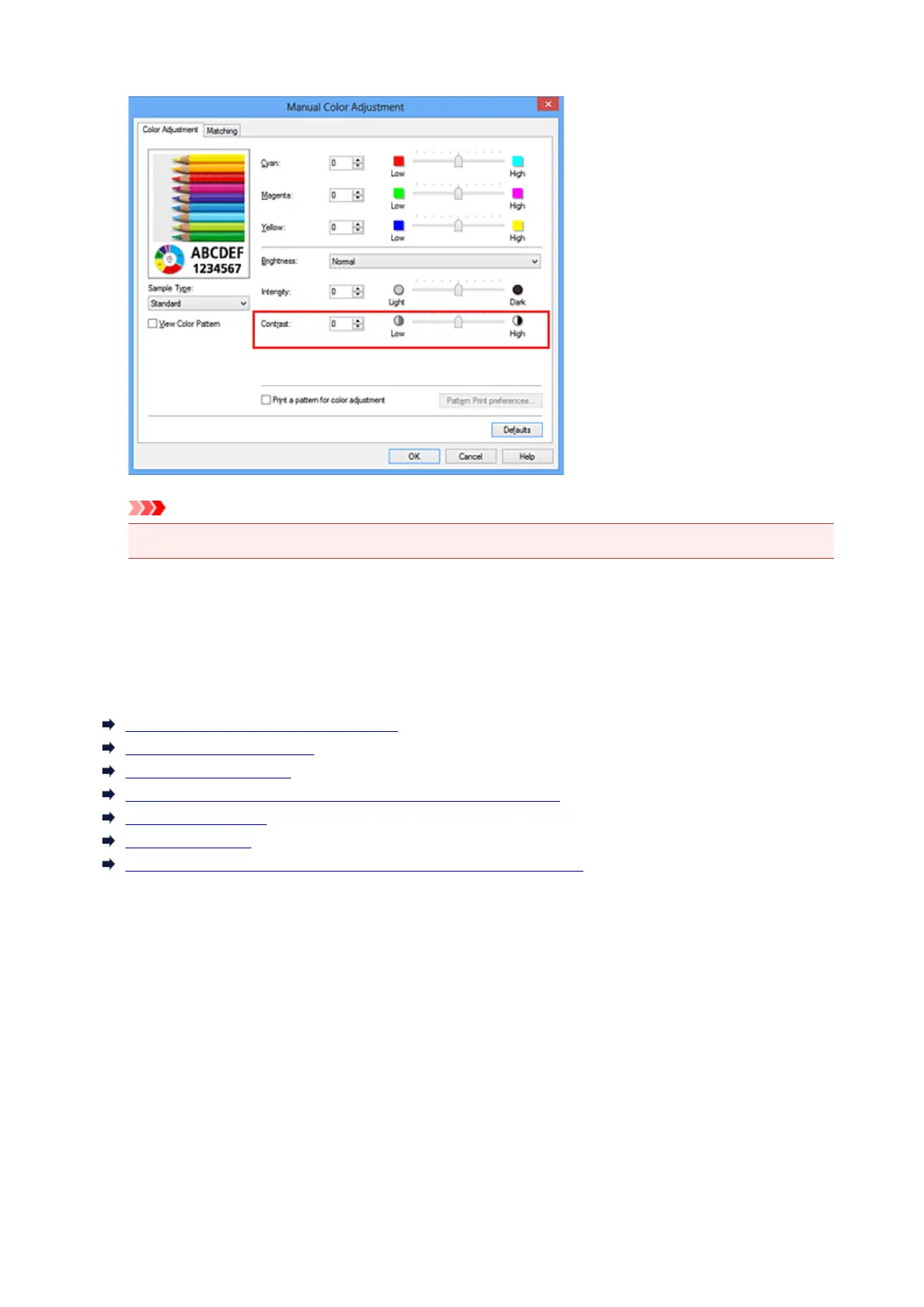 Adjusting Intensity/Contrast Using Sample Patterns (Printer Driver)