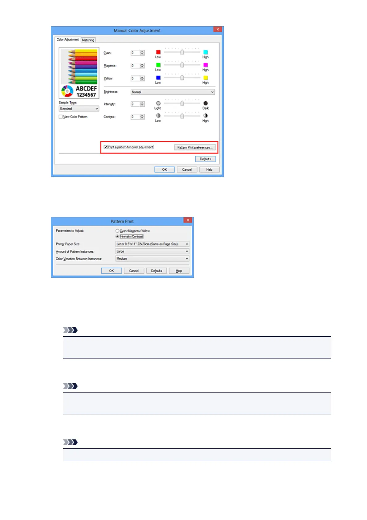 When the Pattern Print dialog box opens, set the following items, and then click OK.