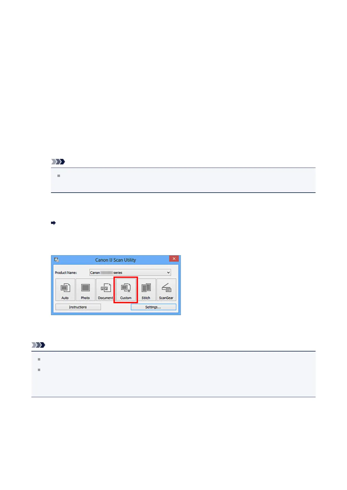Scan) dialog box displayed by clicking Settings.... In the Settings (Custom Scan)