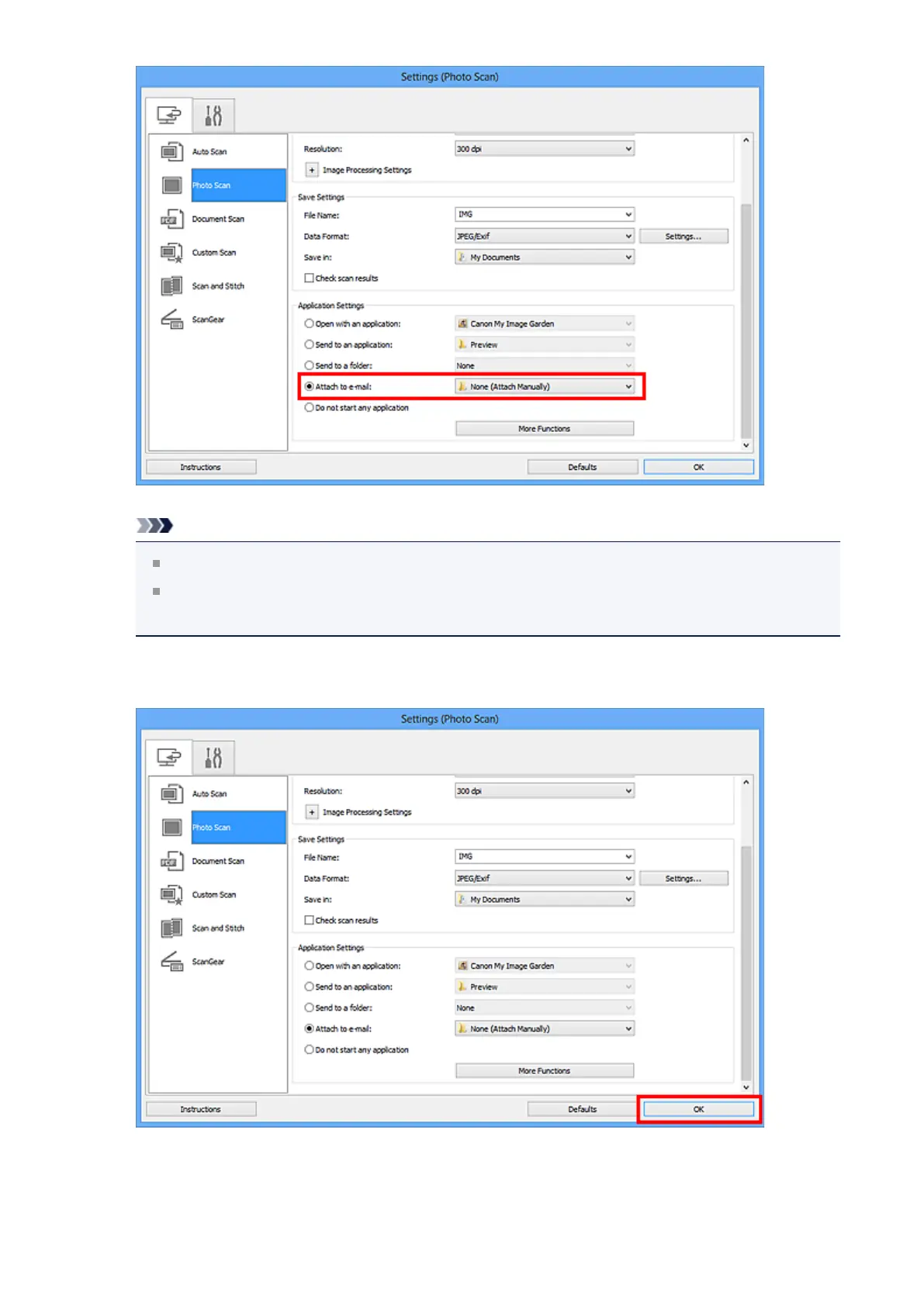 If None (Attach Manually) is selected, manually attach scanned and saved