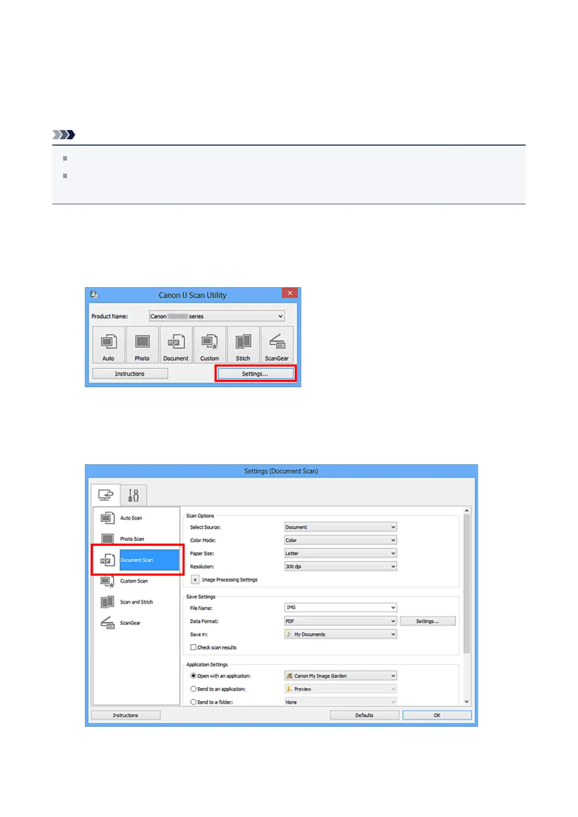 You can extract text when scanning via Document, Custom, or ScanGear.
