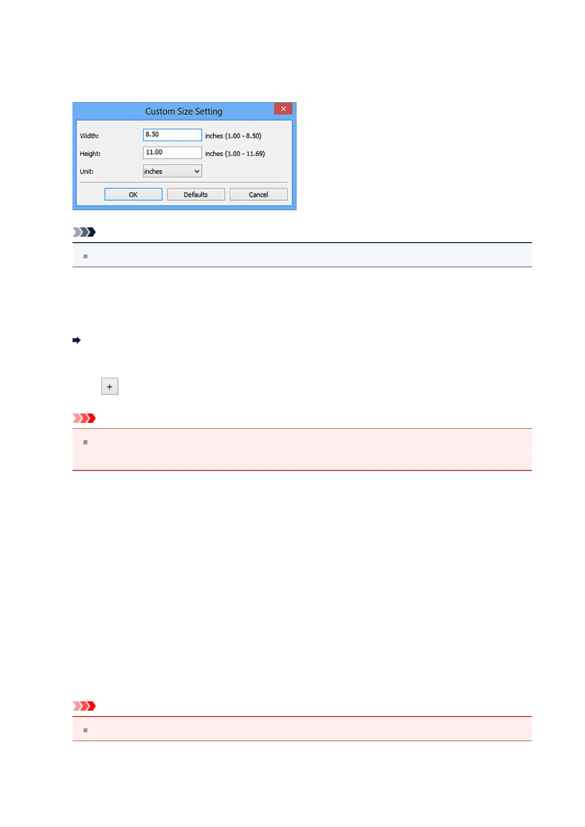 When you select Custom, a screen in which you can specify the paper size appears.