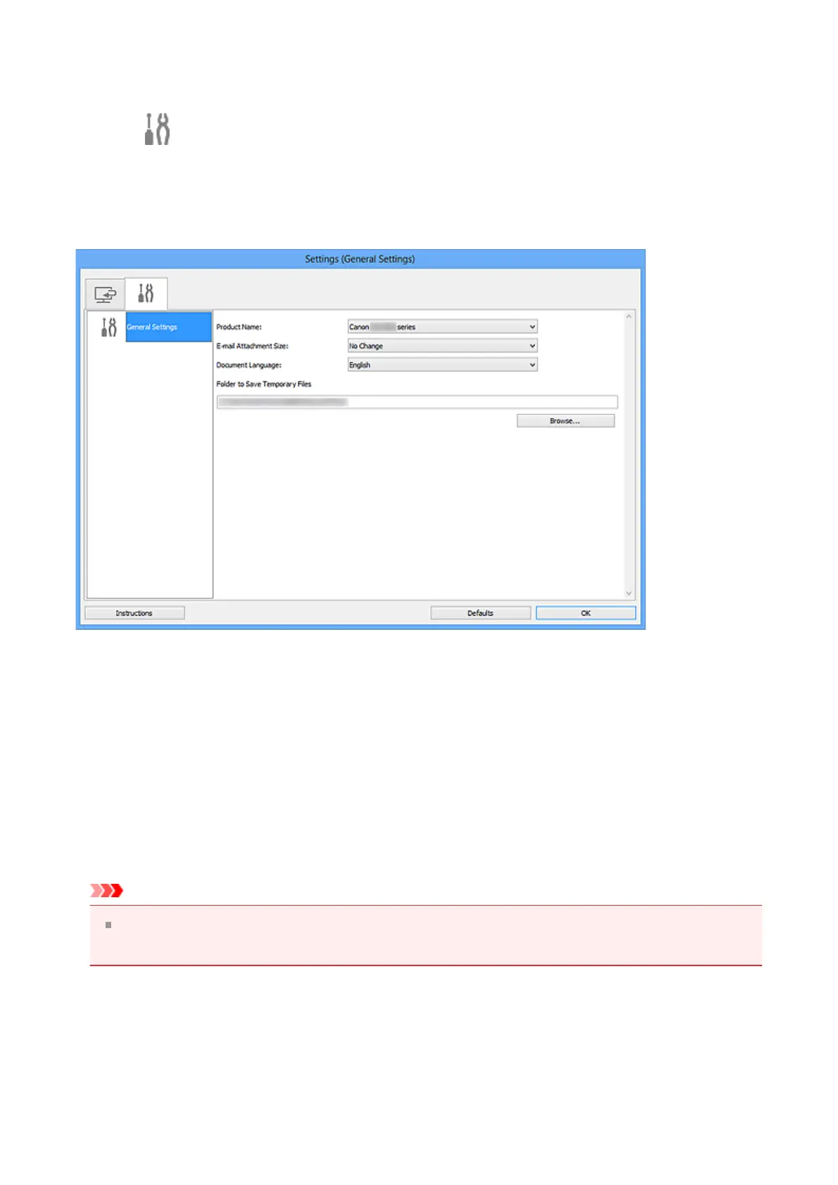 Settings (General Settings) Dialog Box