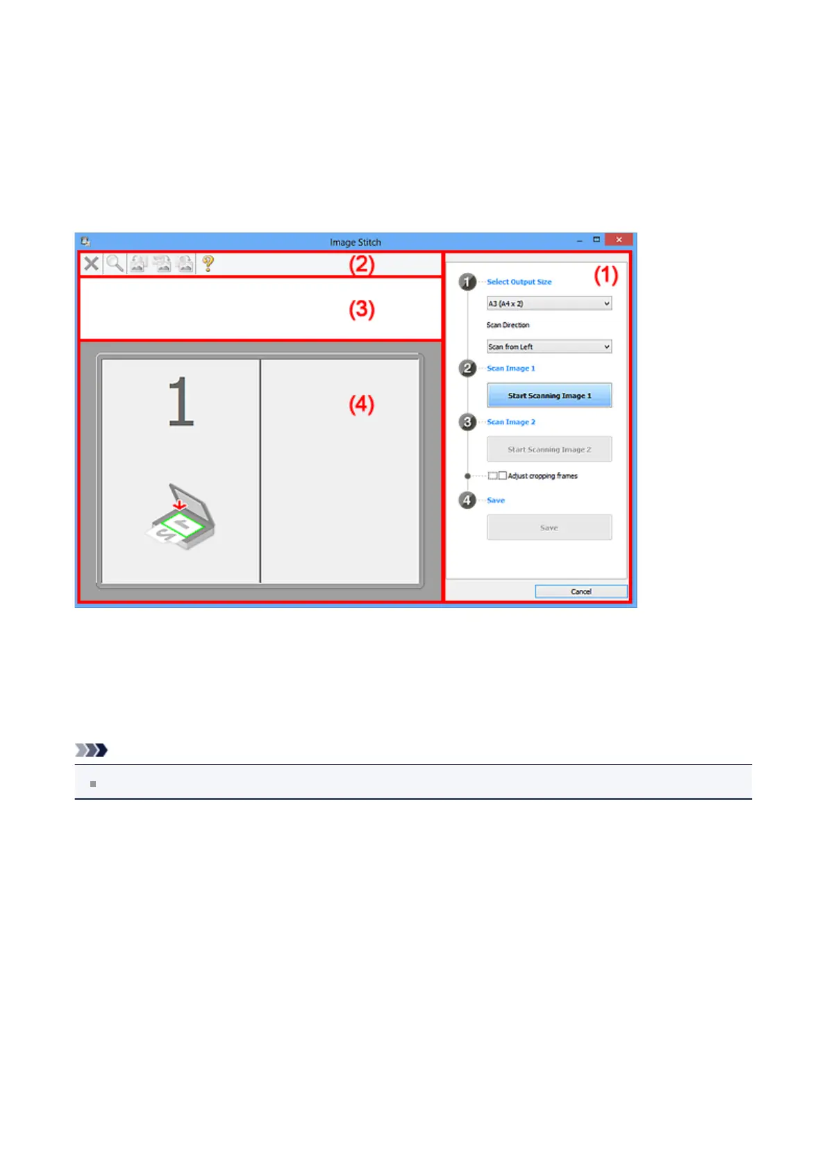 Click Stitch in the IJ Scan Utility main screen to display the Image Stitch window.