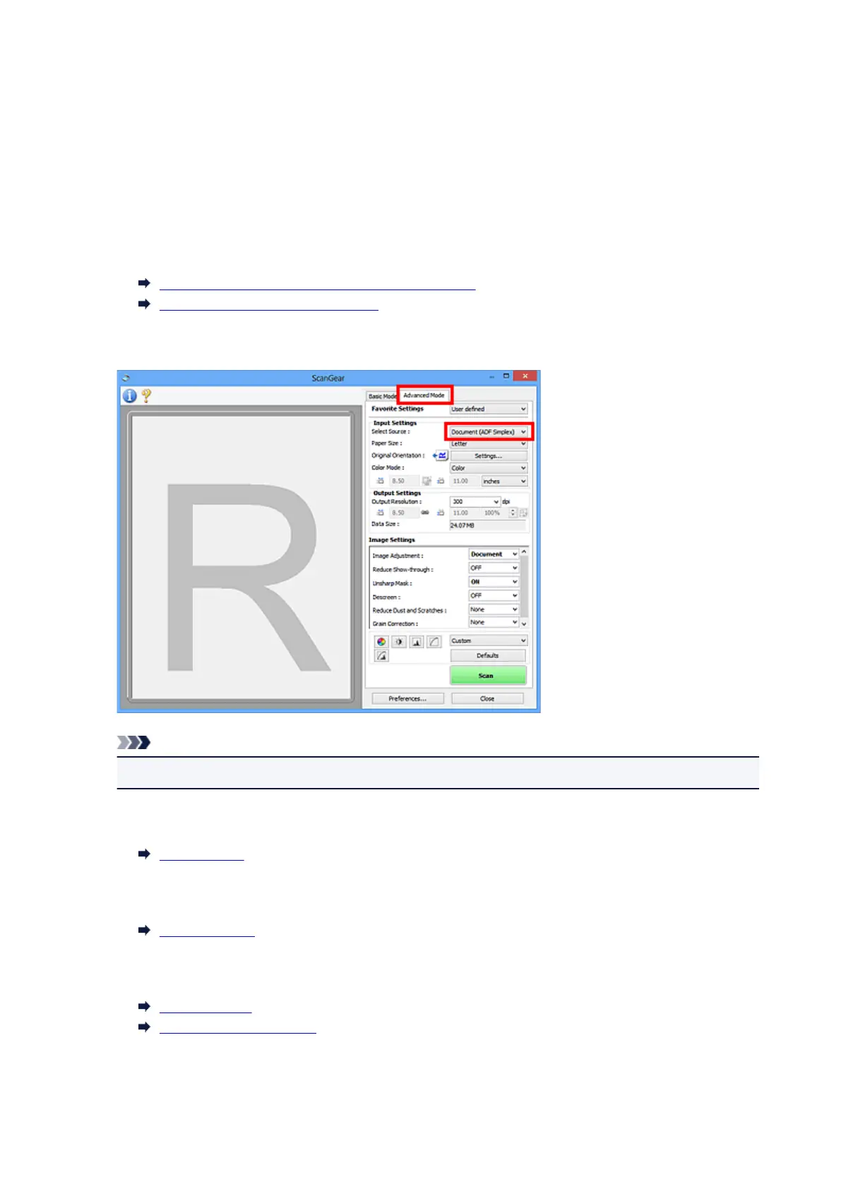 Click the Advanced Mode tab and select Document (ADF Simplex) for Select Source.