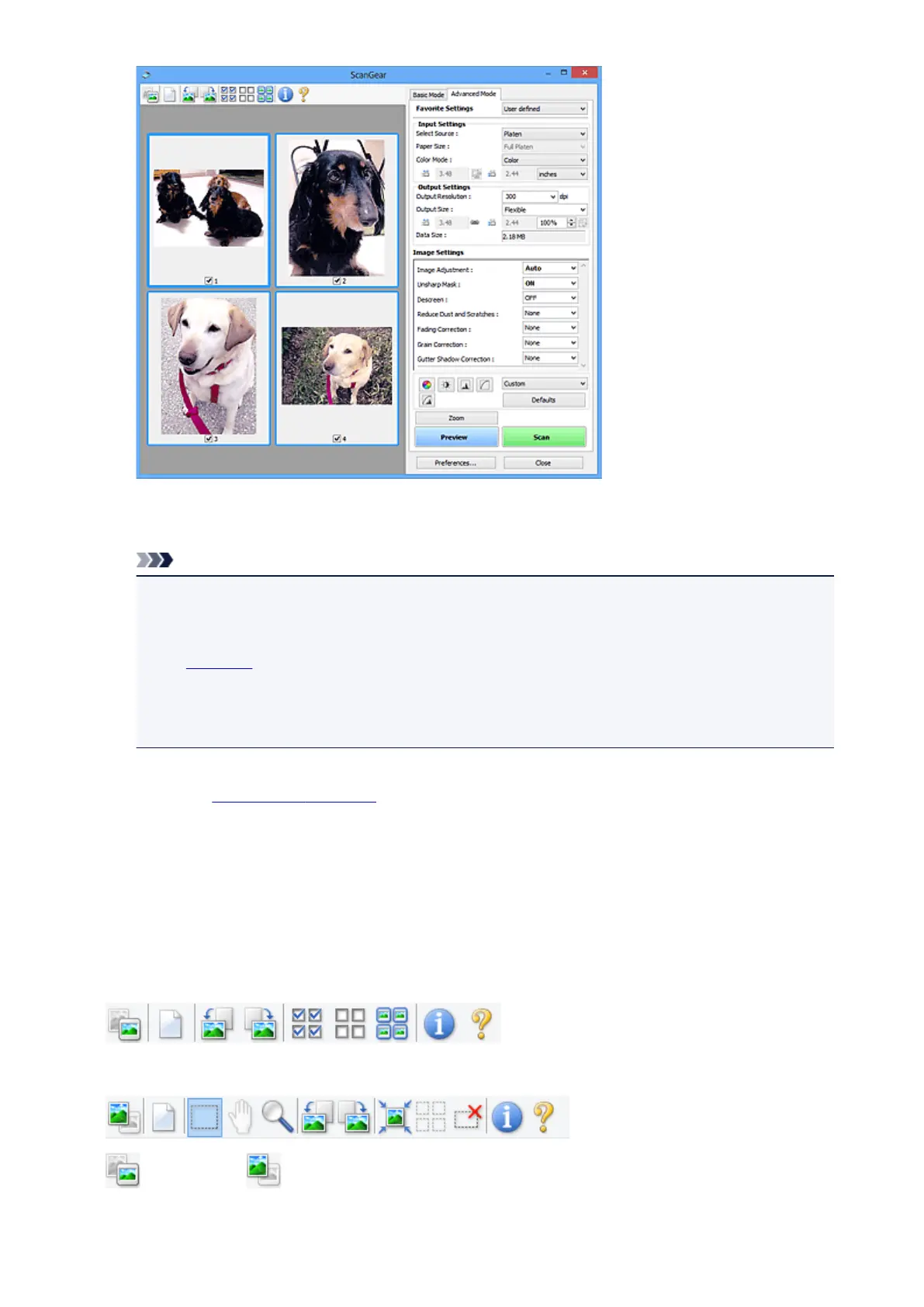 Opens the Preferences dialog box in which you can make scan/preview settings.