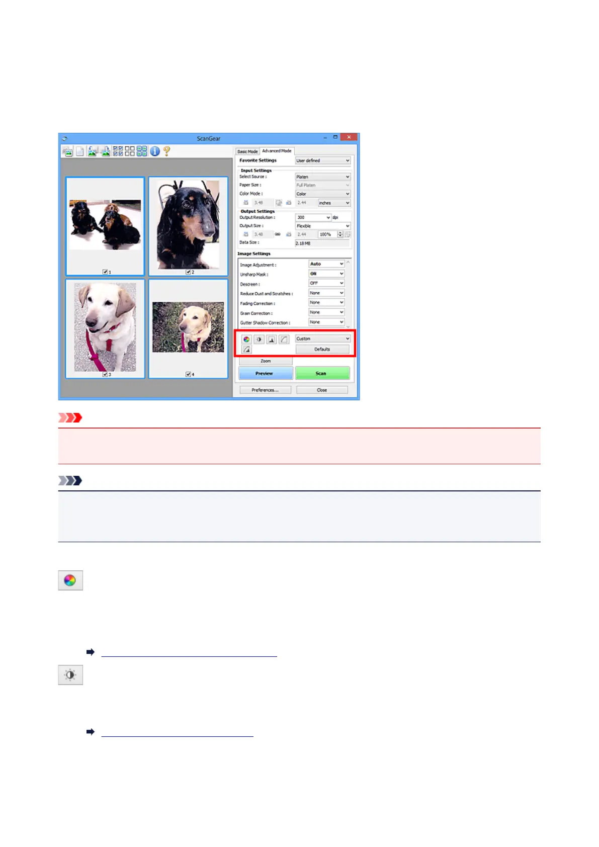 The Color Adjustment Buttons allow you to make fine corrections to the image brightness and color tones