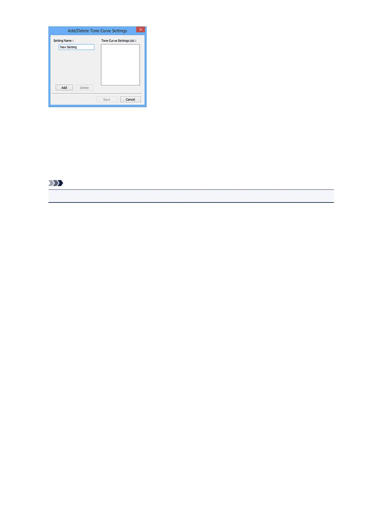 To delete an item, select it in Tone Curve Settings List or Threshold Settings List and click Delete.
