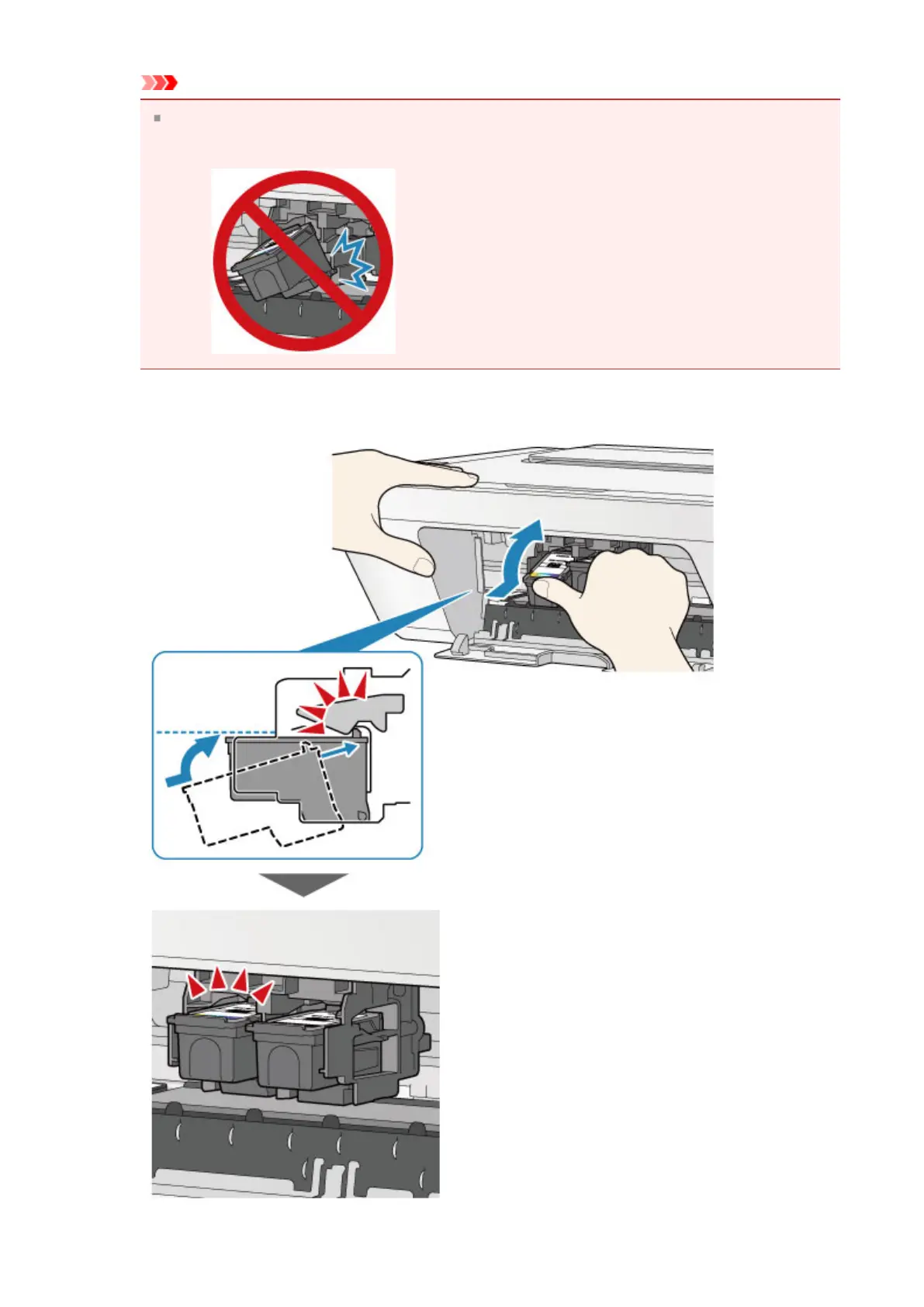 Insert the FINE cartridge gently so that it does not hit the electrical contacts on