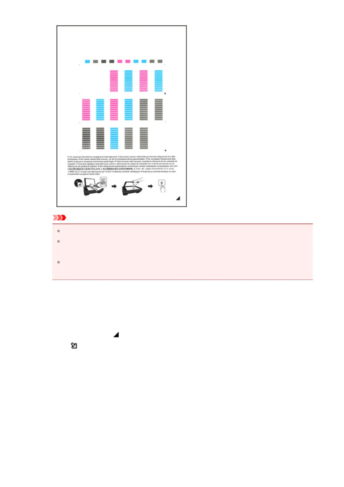 Be careful not to get the print head alignment sheet dirty. If the sheet is stained