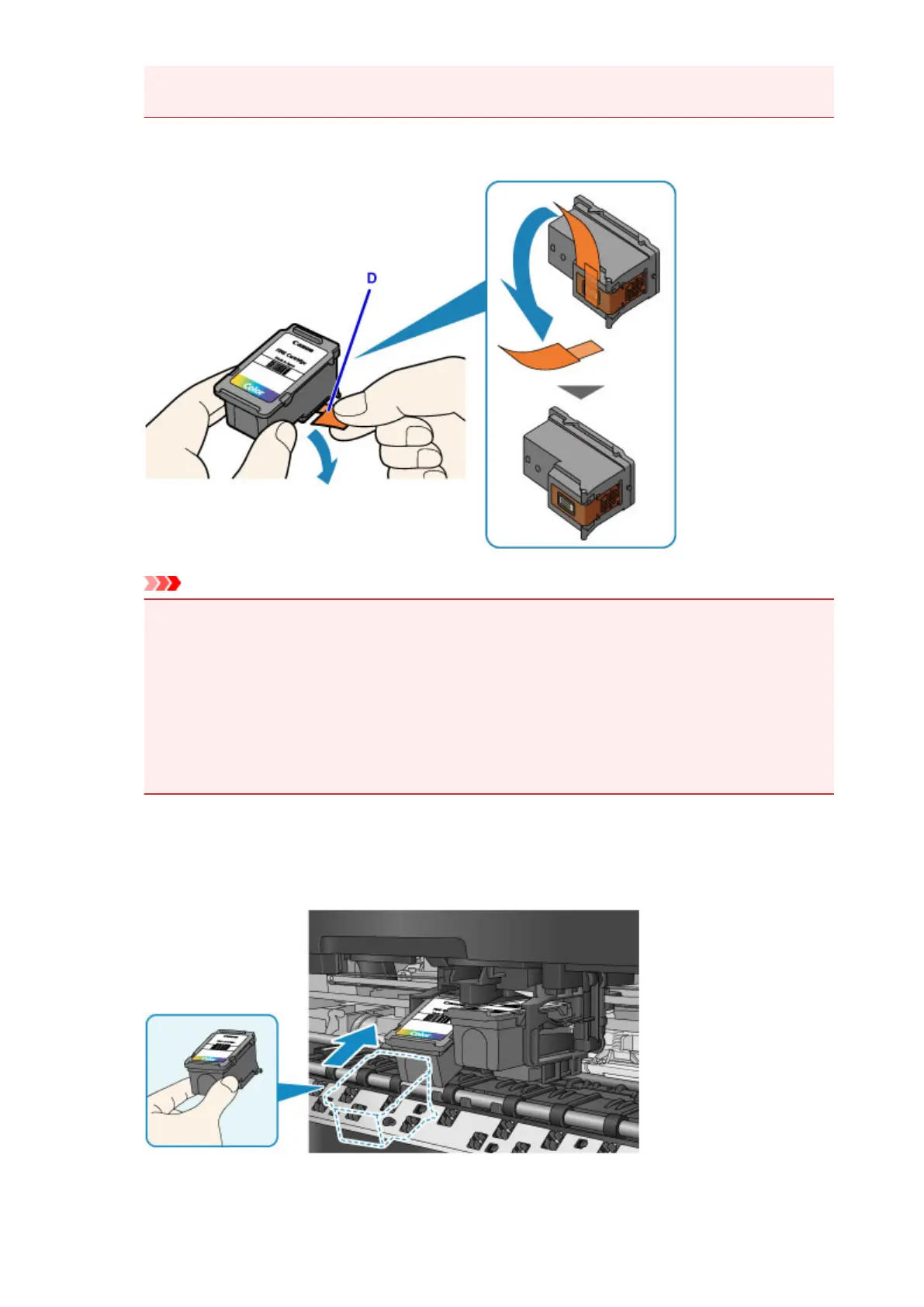 • Be careful not to stain your hands and the surrounding area with ink on the removed protective