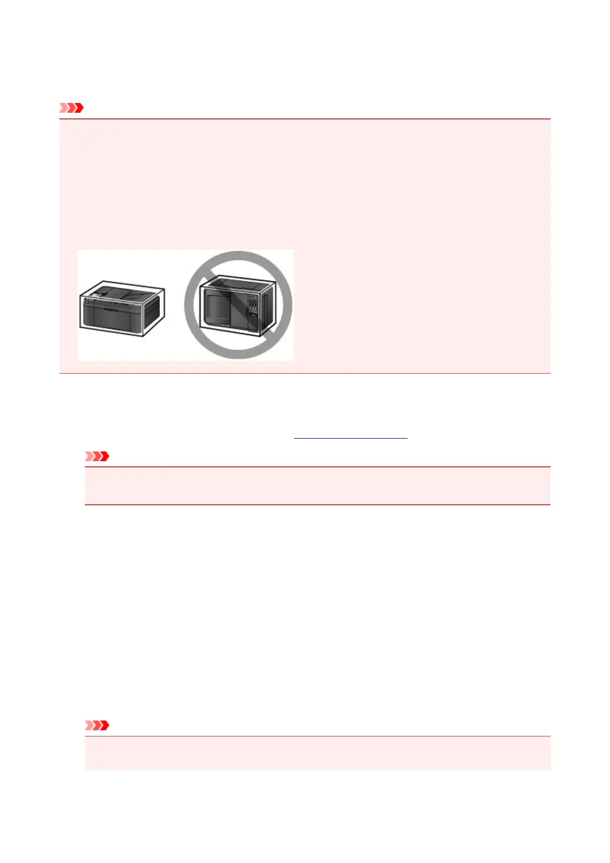 • After packing, do not tilt the box containing the machine or turn it on its side or upside down. Doing so