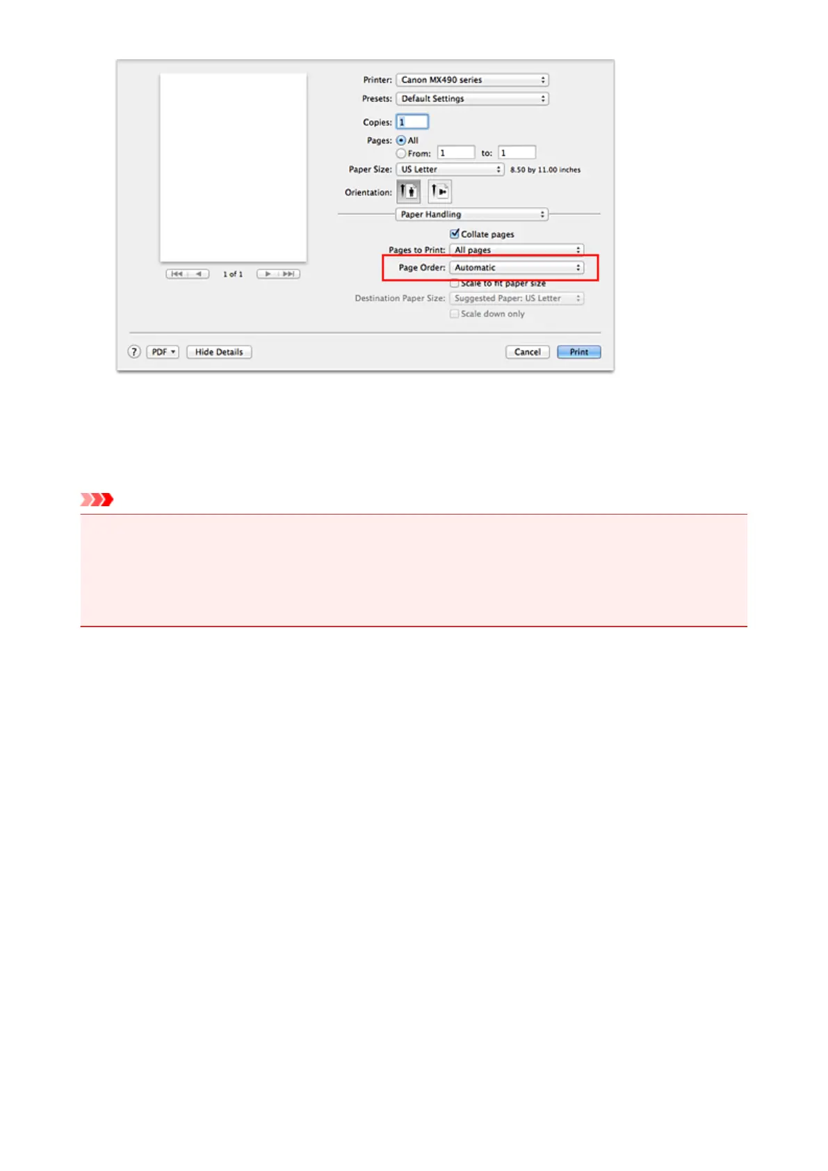 When you execute print, the specified number of copies will be printed with the specified printing order.