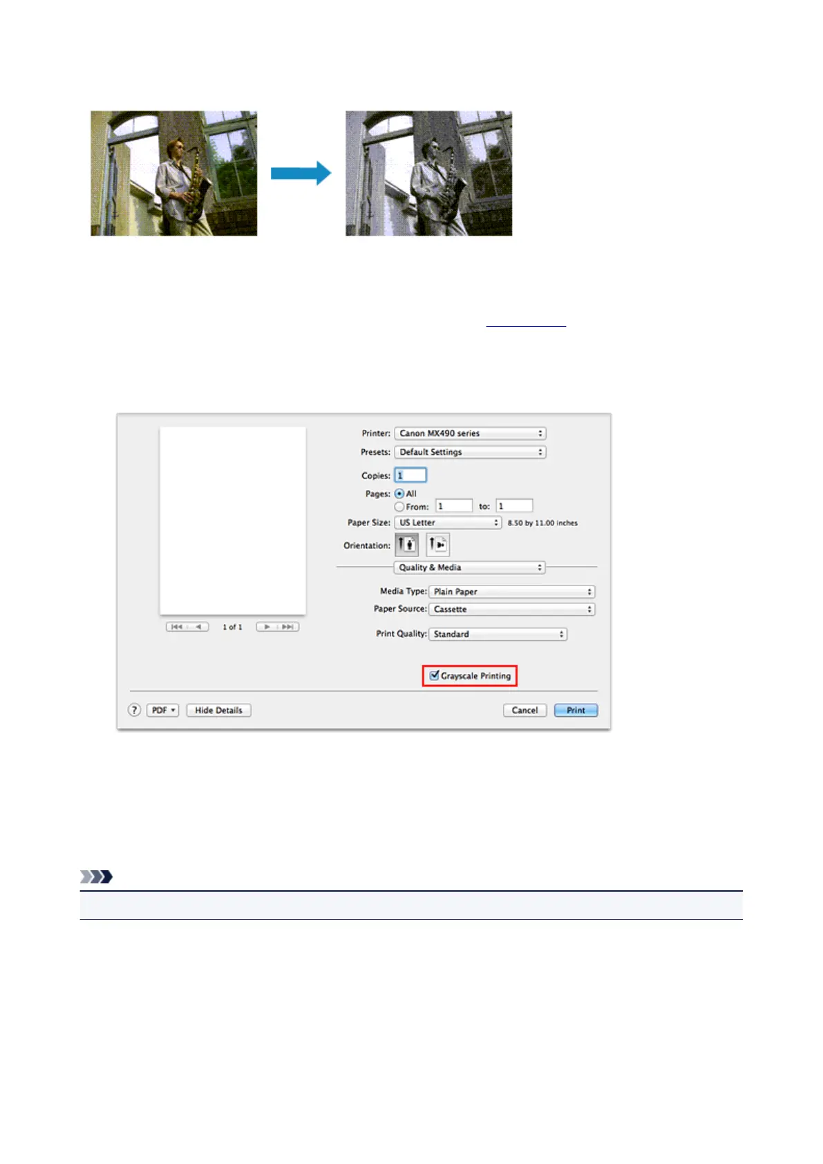 • During Grayscale Printing, inks other than black ink may be used as well.