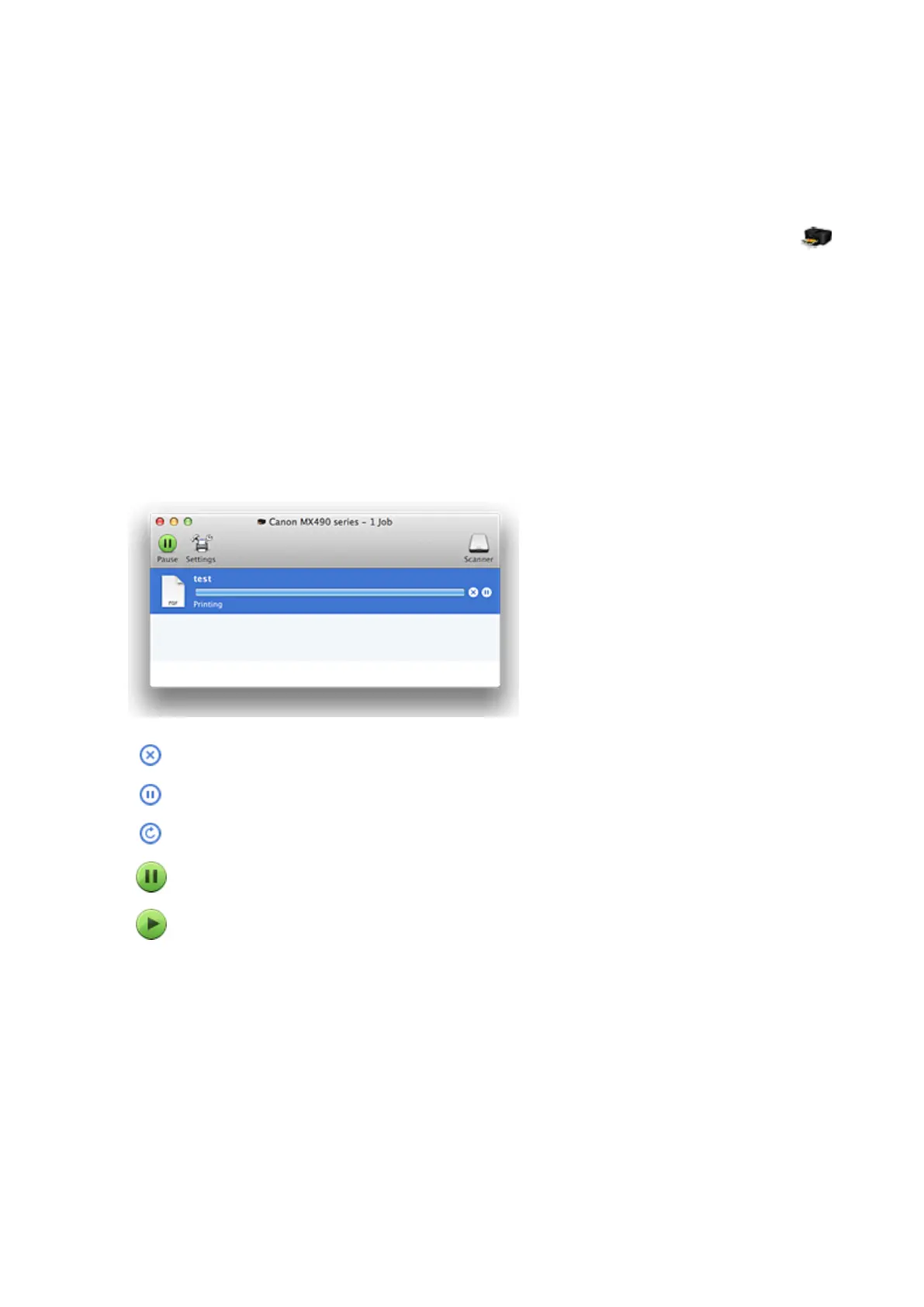 Displayed only when printing of all documents is being stopped, and resumes printing all documents.