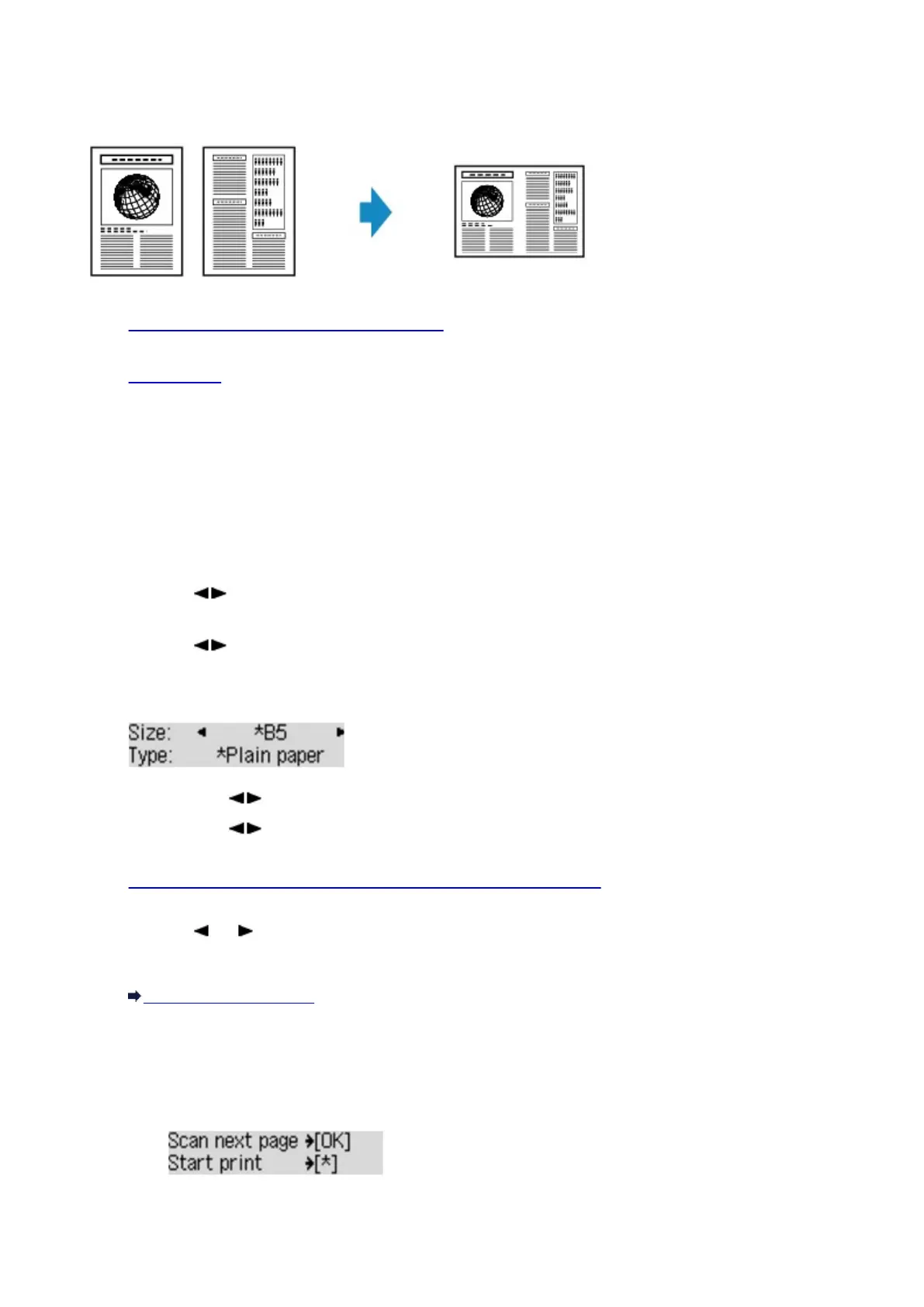 If a page size setting or a media type setting that cannot be used in 2-on-1 copying is selected, the LCD
