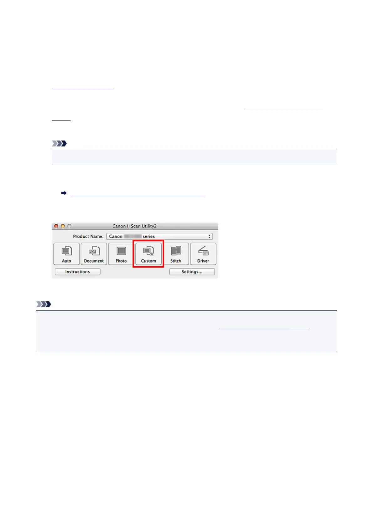 displayed by clicking Settings.... In the Settings (Custom Scan) dialog, you can also make advanced