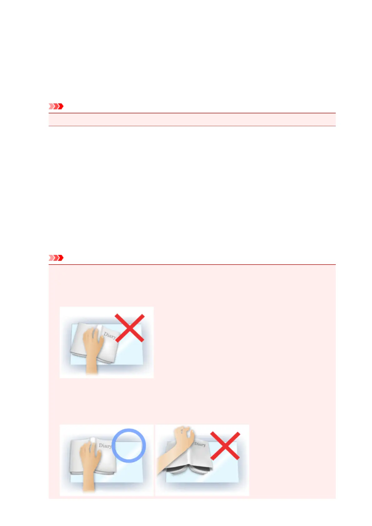• Do not place objects that weigh 4.4 lbs (2.0 kg) or more on the platen. In addition, do not press on
