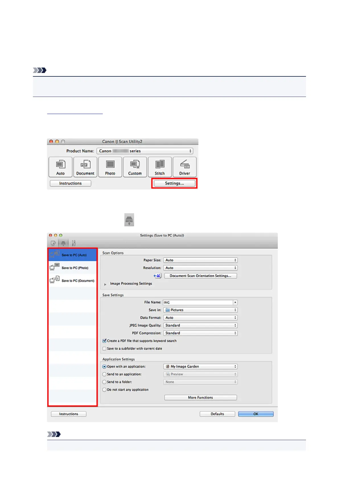IJ Scan Utility allows you to specify how to respond when scanning from the operation panel.