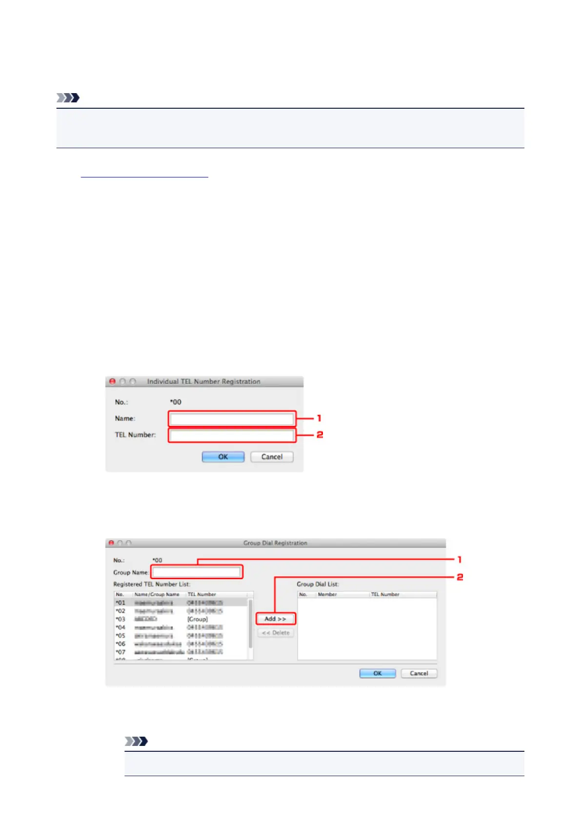 Click Register individual TEL number or Register group dial, then click Next....