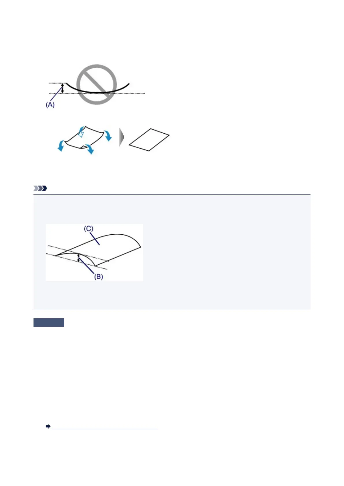 If the curl on the four corners of the paper is more than 0.1 inch / 3 mm (A) in height, the paper may be