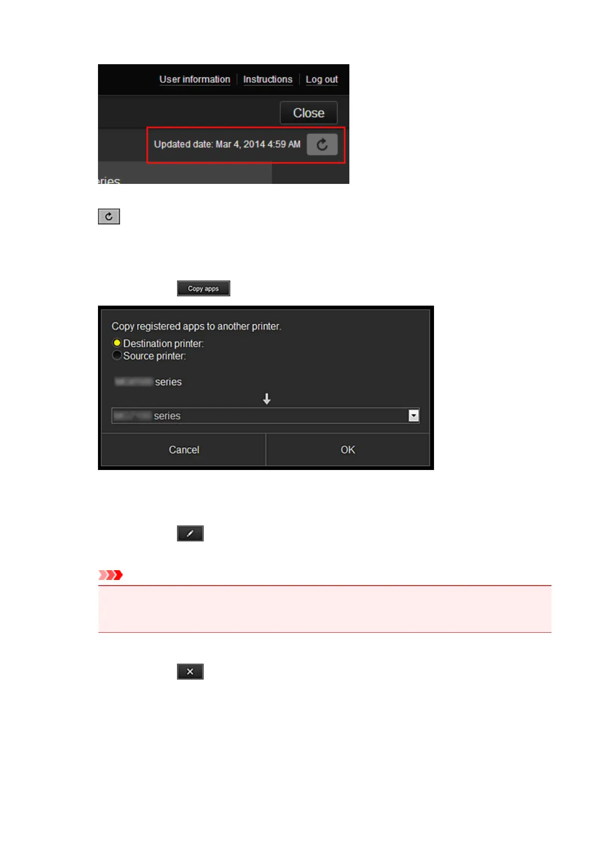When you select , the printer is deleted from the Canon Inkjet Cloud Printing Center.