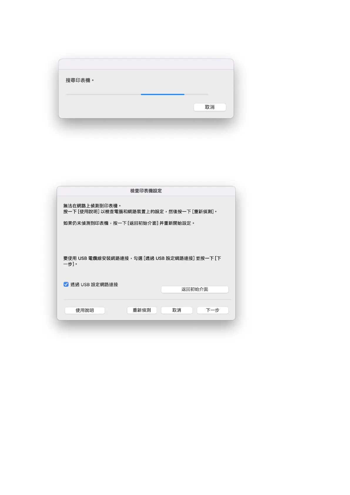 23. 選擇[透過 USB 設定網路連接],然後按[下一步]