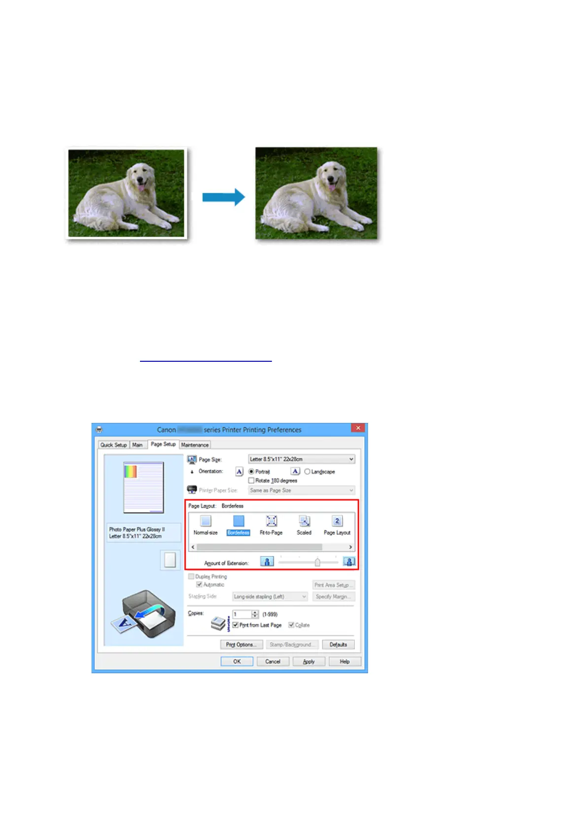 You can also set borderless printing in Additional Features on the Quick Setup tab.