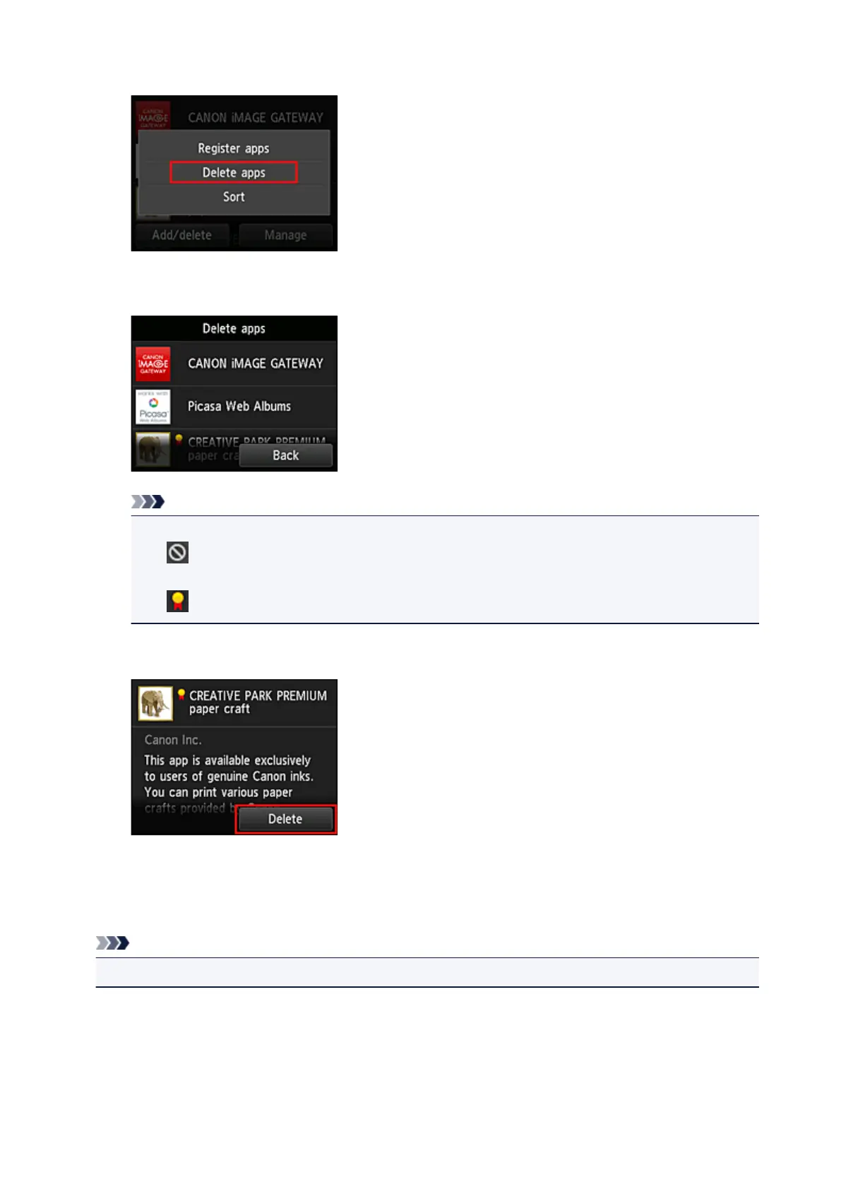To end the app deletion, select Back and return to the cloud's Main screen.