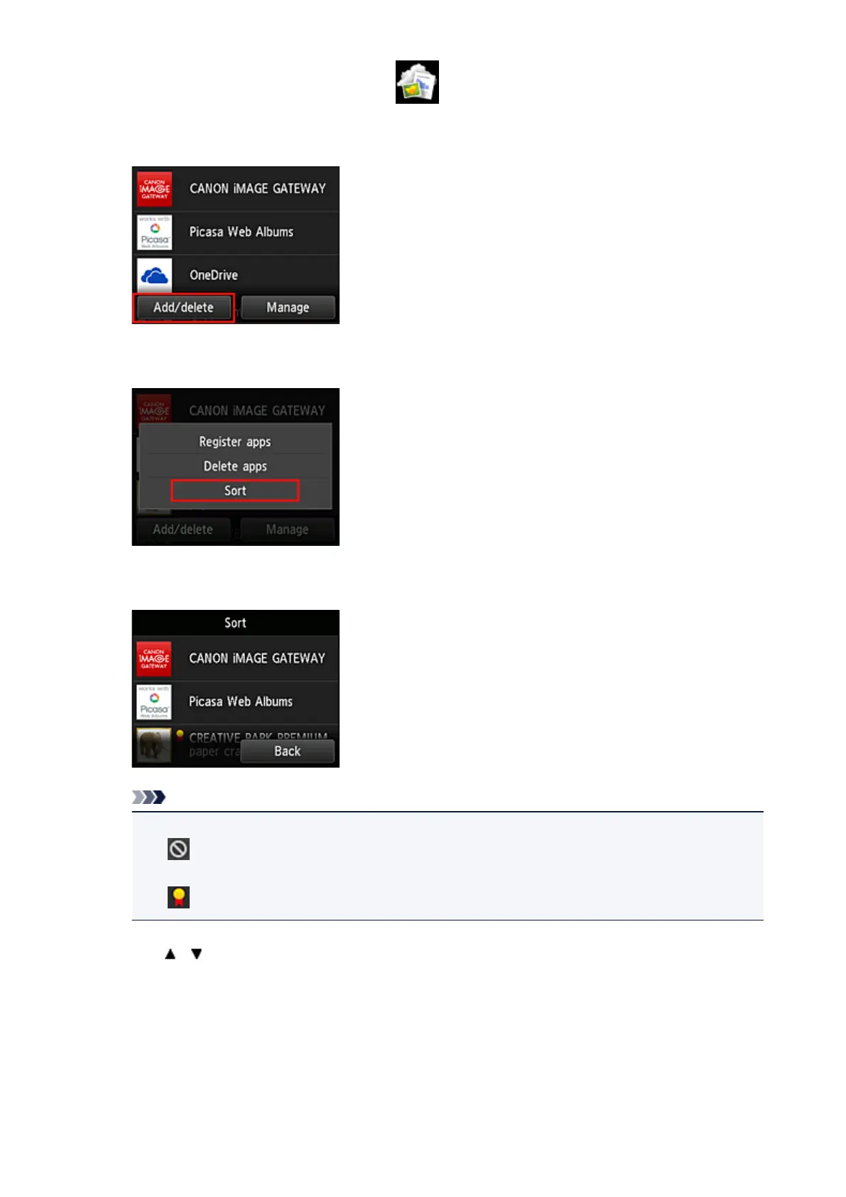 Use / buttons to move the app