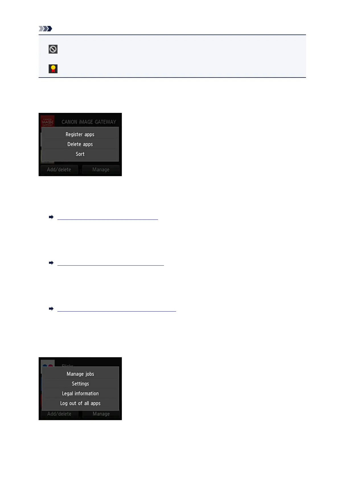 Use this button to manage jobs, log out of an app, show the license agreement and privacy statement,
