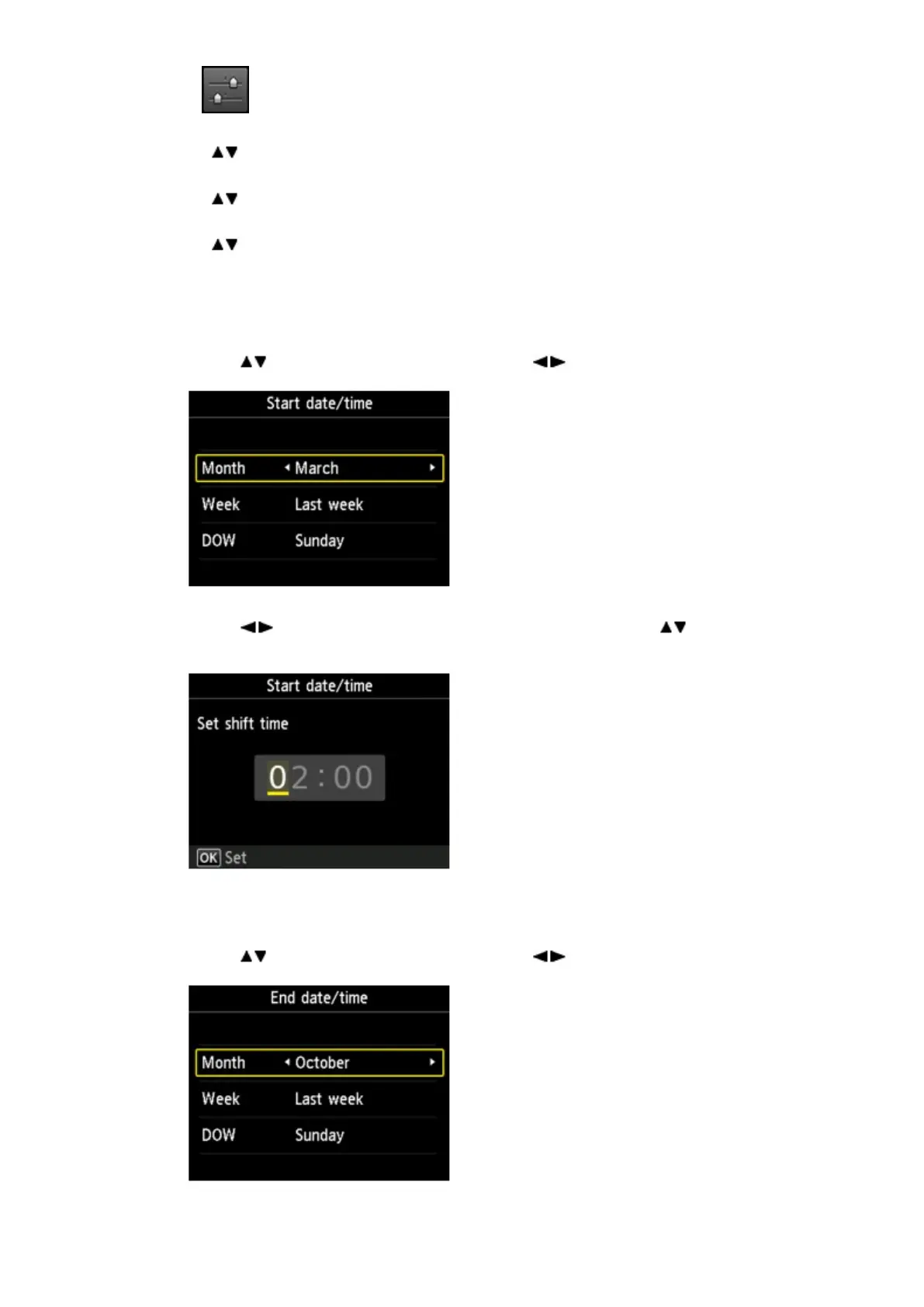 Set the date and time when summer time starts.
