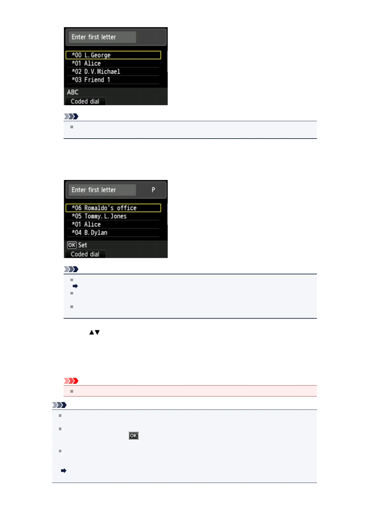 group name, names beginning with the character closest to that entered are displayed.