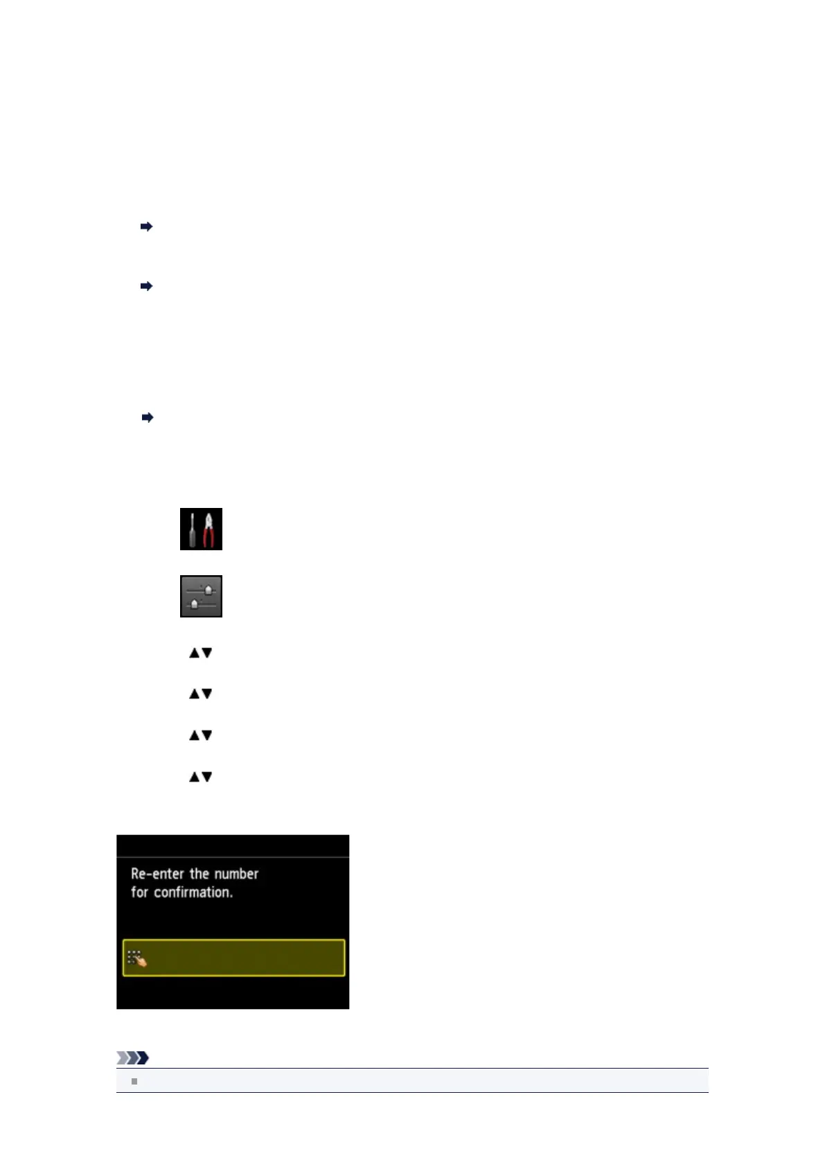 7. Use the button to select FAX number re-entry, then press the OK button.