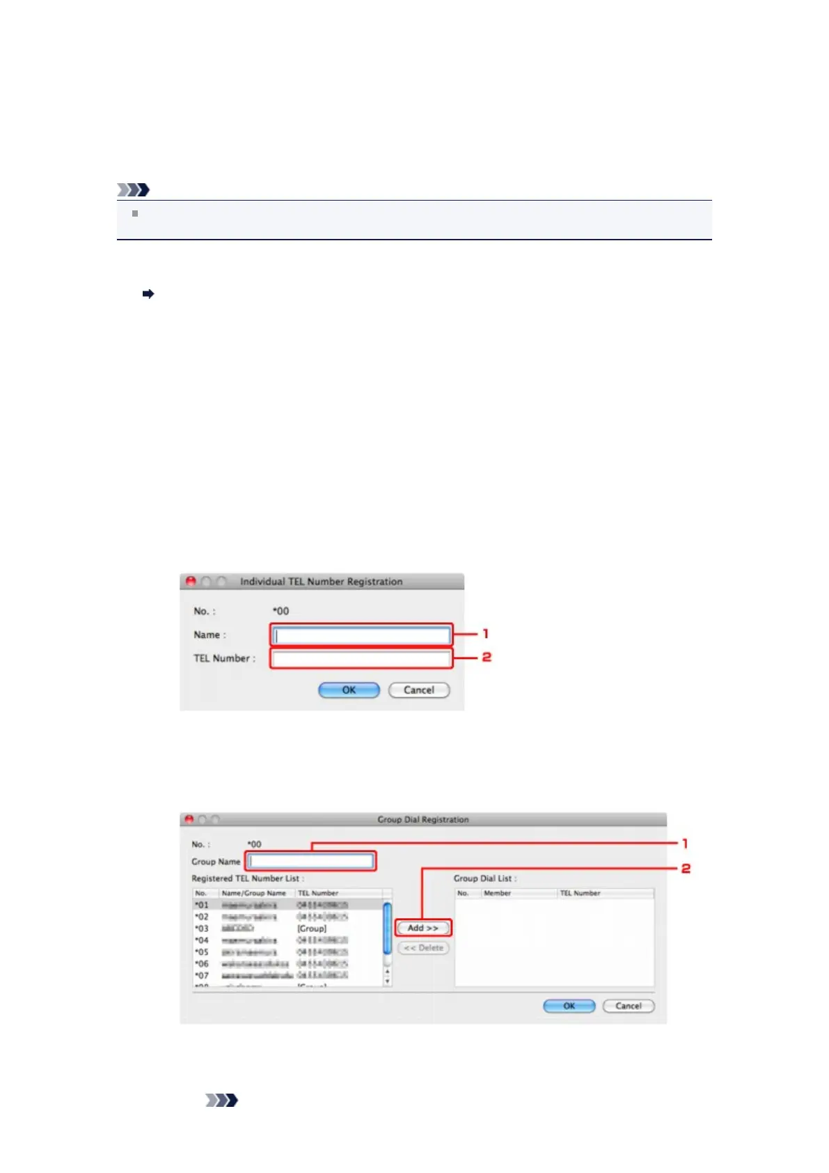 5. Click Register individual TEL number or Register group dial, then click Next....