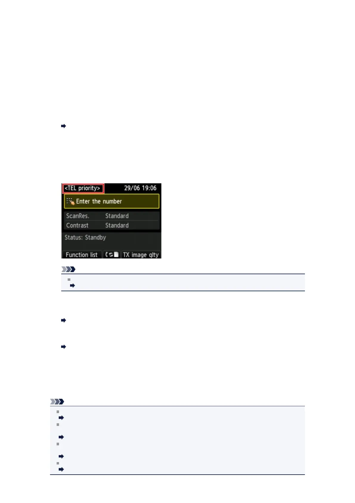 Make sure of the receive mode setting displayed on the Fax standby screen.