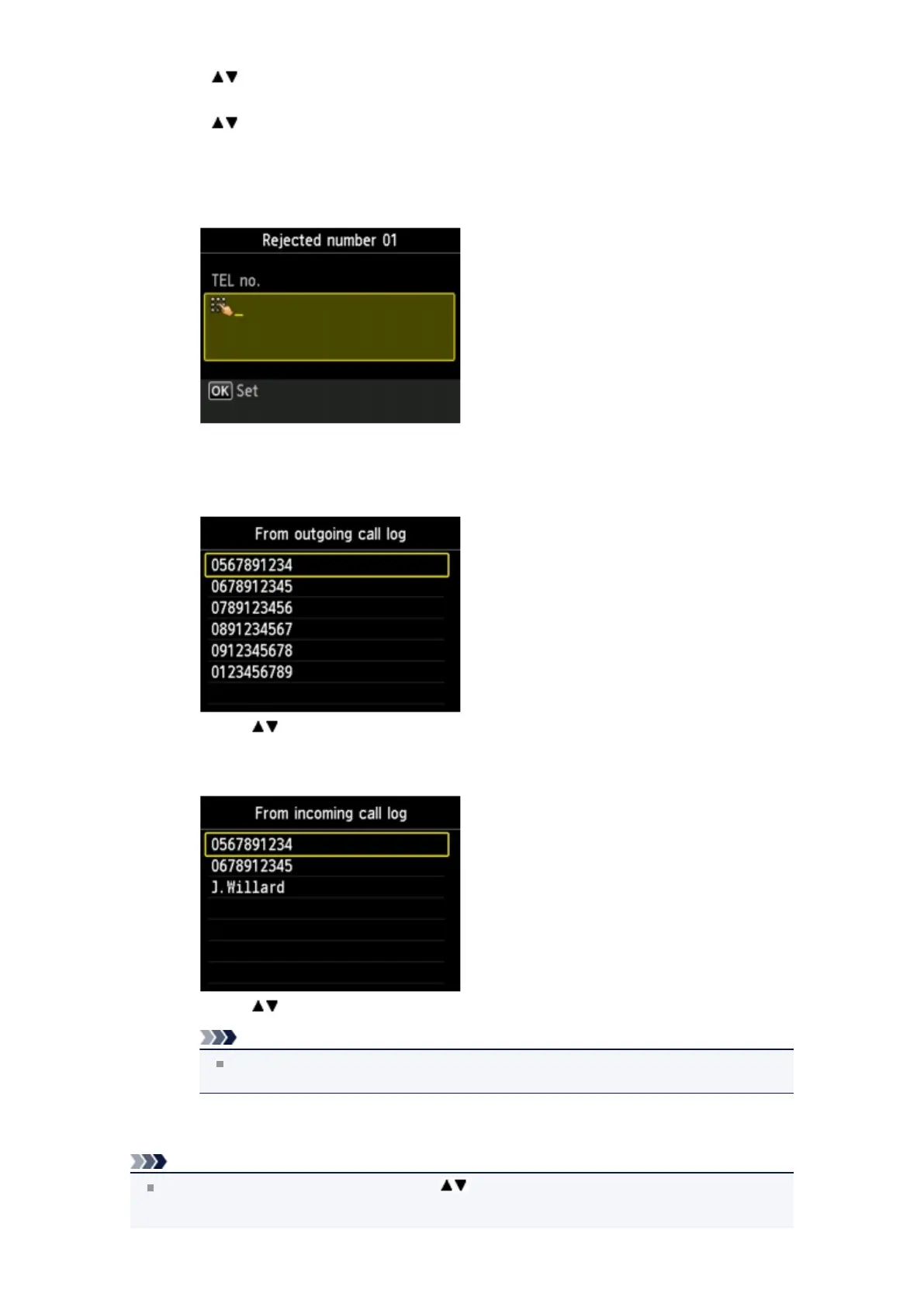When you select this registration method, the screen to select the fax/telephone number or the