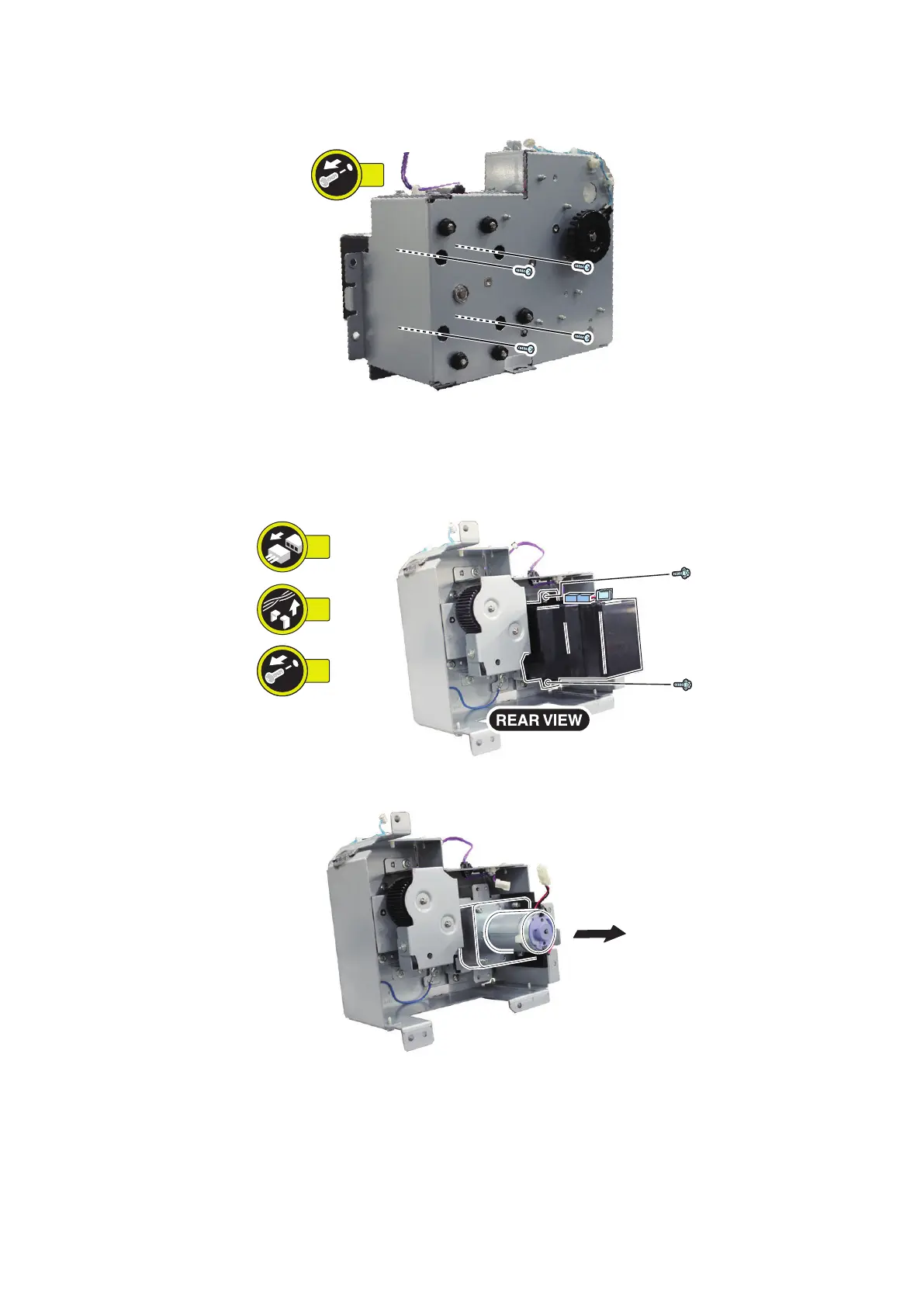 2. Remove screws from the access hole of the Lifter Motor Assembly.